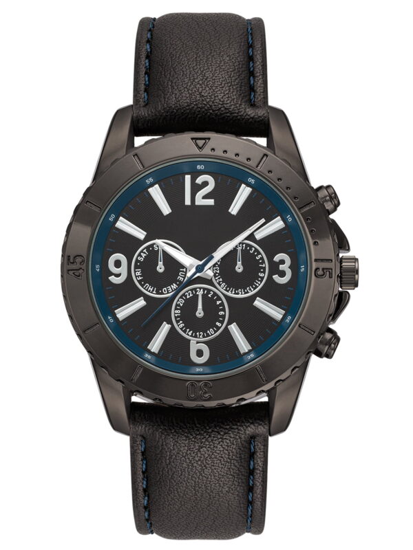 GEORGE Men’s Watch: Gunmetal Case, Black Easy Read Dial, Cognac Vegan Leather Band (FMDOGE009)