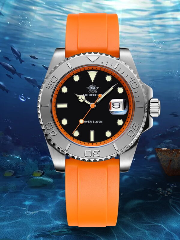 • ADDIESDIVE Men's Watch, Analog Quartz Watch, Professional Dive Watch 200M Waterproof, 316L Stainless Steel, Ceramic Bezel, Luminous, Orange