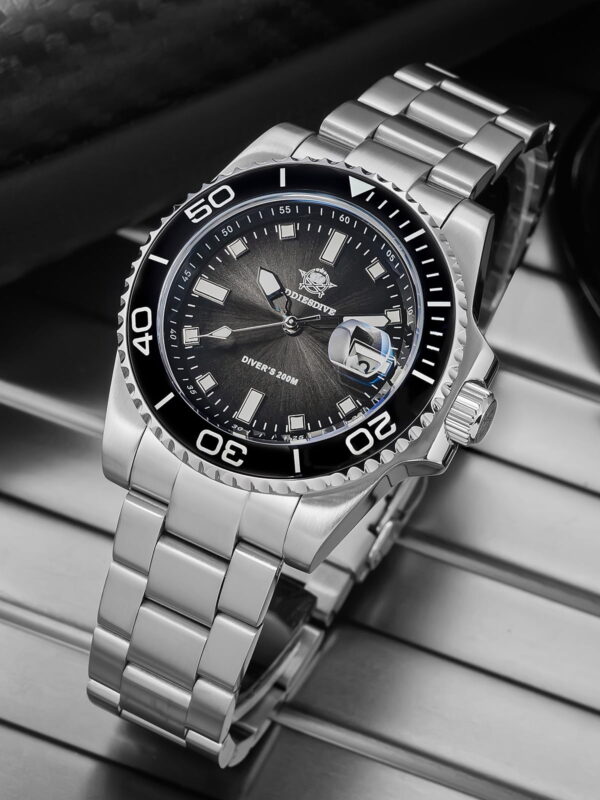 ADDIESDIVE Men’s Watch, Analog Quartz Watch, Professional Dive Watch 200M Waterproof, 316L Stainless Steel, Ceramic Bezel, Luminous, Black