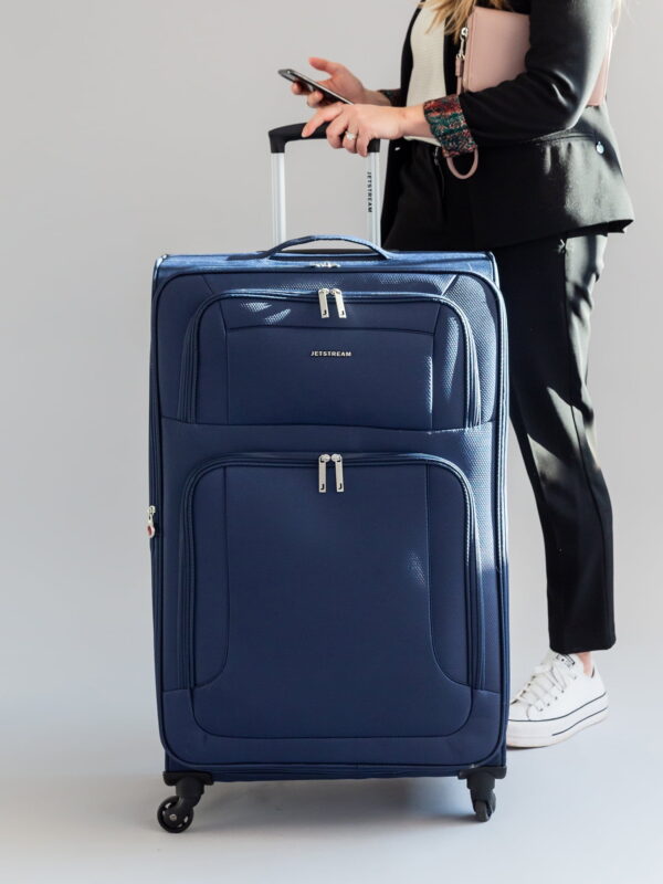 • Jetstream Softside Large Checked Luggage, Lightweight Rolling Travel Suitcase with Spinner Wheels