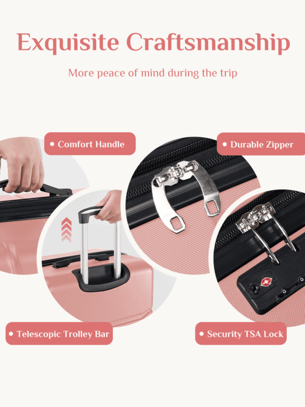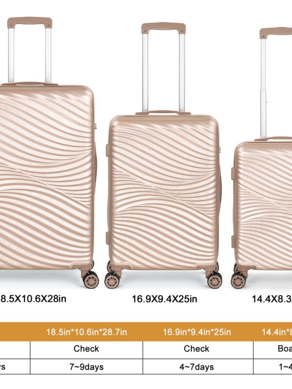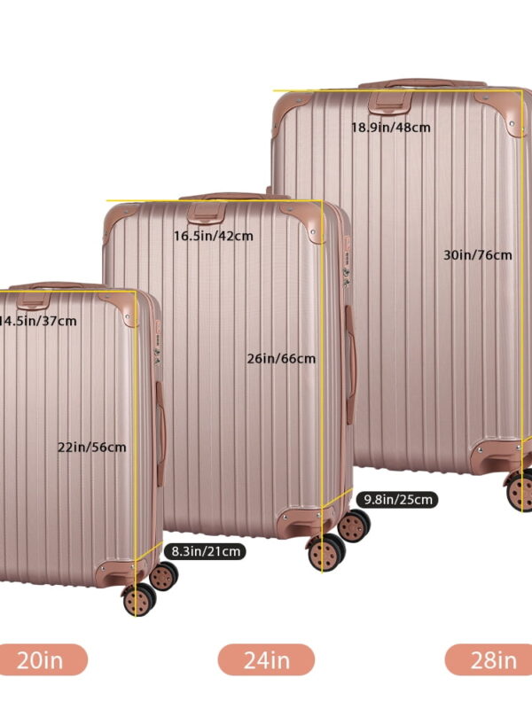 Luggage 3-Pieces Set ABS Durable Suitcase Rose Gold 20″24″28″