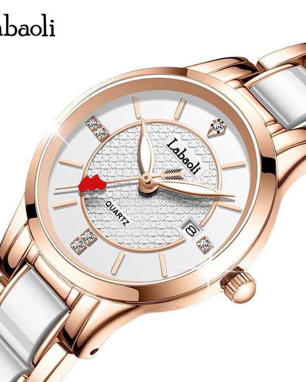 • Explojoy Women's Luxury Ceramic Quartz Watch – Waterproof Elegant Timepiece with Calendar & Luminous Dial