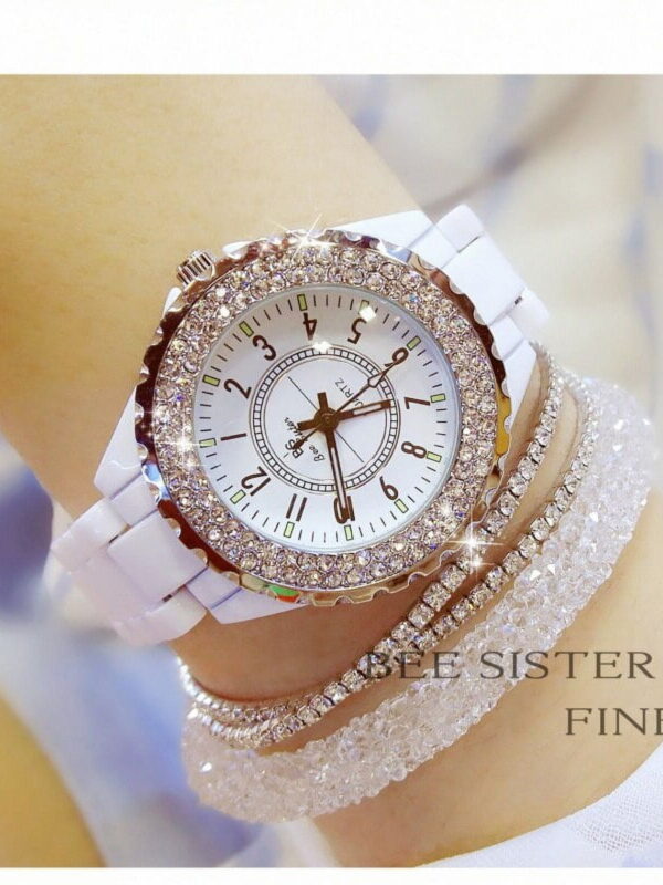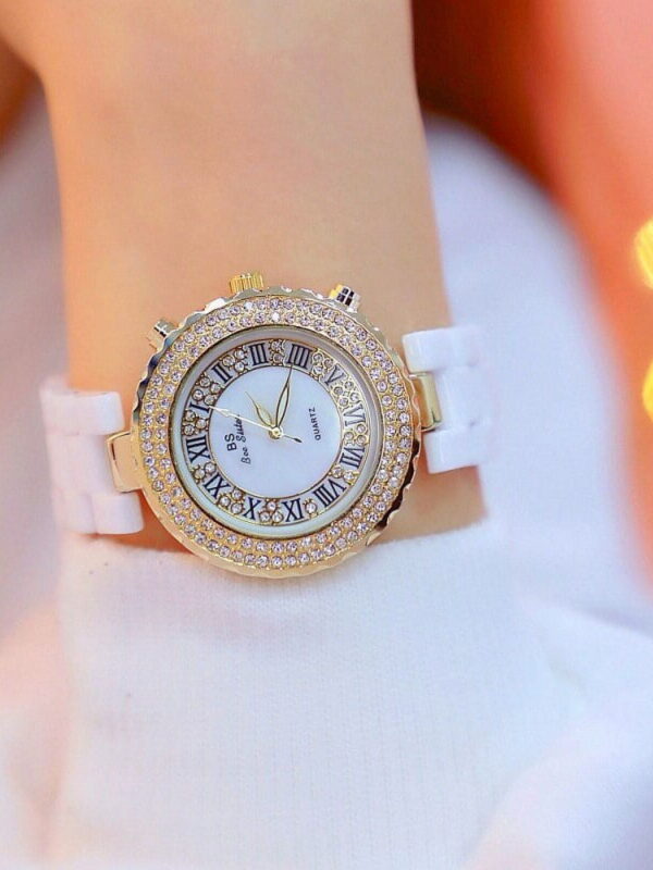 • BS New Student Watch Brand Light Luxury Ceramic Watch Women's Watch Full of Diamonds Quartz Watch Fashion