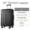Telescopic Handle: 3-level adjustable handle to meet the needs of users of different heights. 28-inch checked luggage size: 18.5*11.6*29.5″. Ideal for long-distance trips.