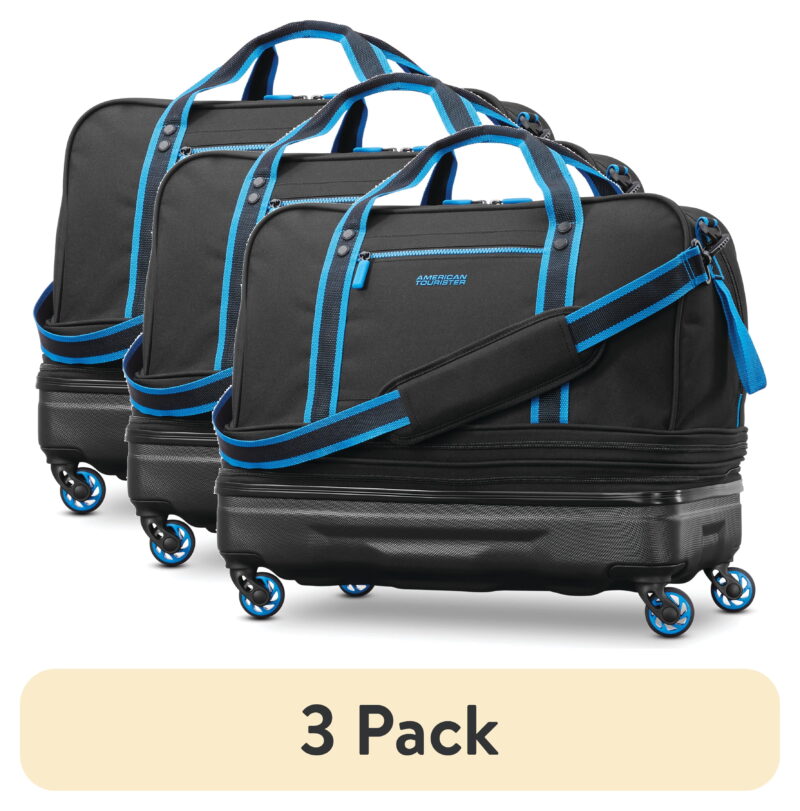 American Tourister’s Exo Hybrid Softside rolling duffel design expands to 2 larger sizes when extra room is needed. The Exo Hybrid Softside rolling duffel is built with durable polyester with blue accent. The duffel has four sturdy in-line wheels which keep it easy to move. It has interior access zip opening, large main compartment and side pocket for easy access to your items while traveling.