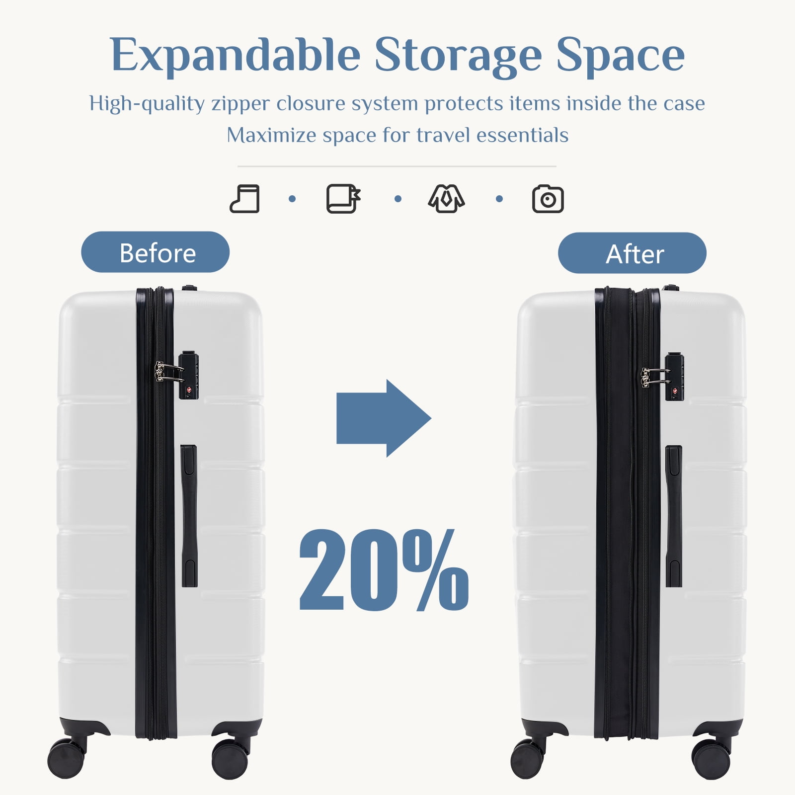 • 【Smart, Ample & Expandable Storage】: This suitcase offers a highly organized packing experience. The interior is divided into two main compartments: one side features a mesh pocket for small items and an expandable zipper for 15% more capacity, while the other side includes a strong X-shaped compression strap to secure clothes and minimize wrinkles, keeping everything neatly in place.