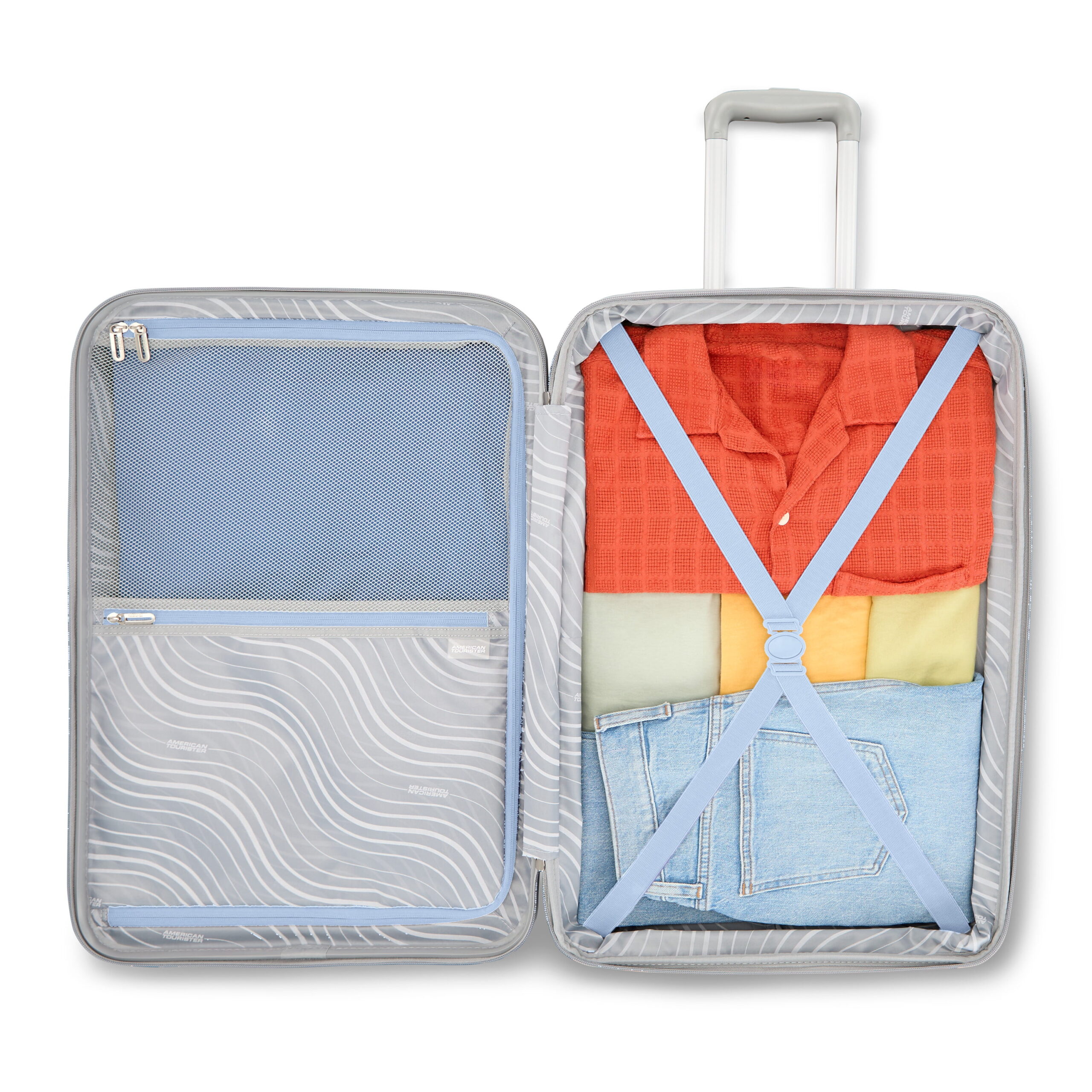 - Equipped with 360-degree Dual Spinner Wheels, the American Tourister Waves luggage moves smoothly in all directions