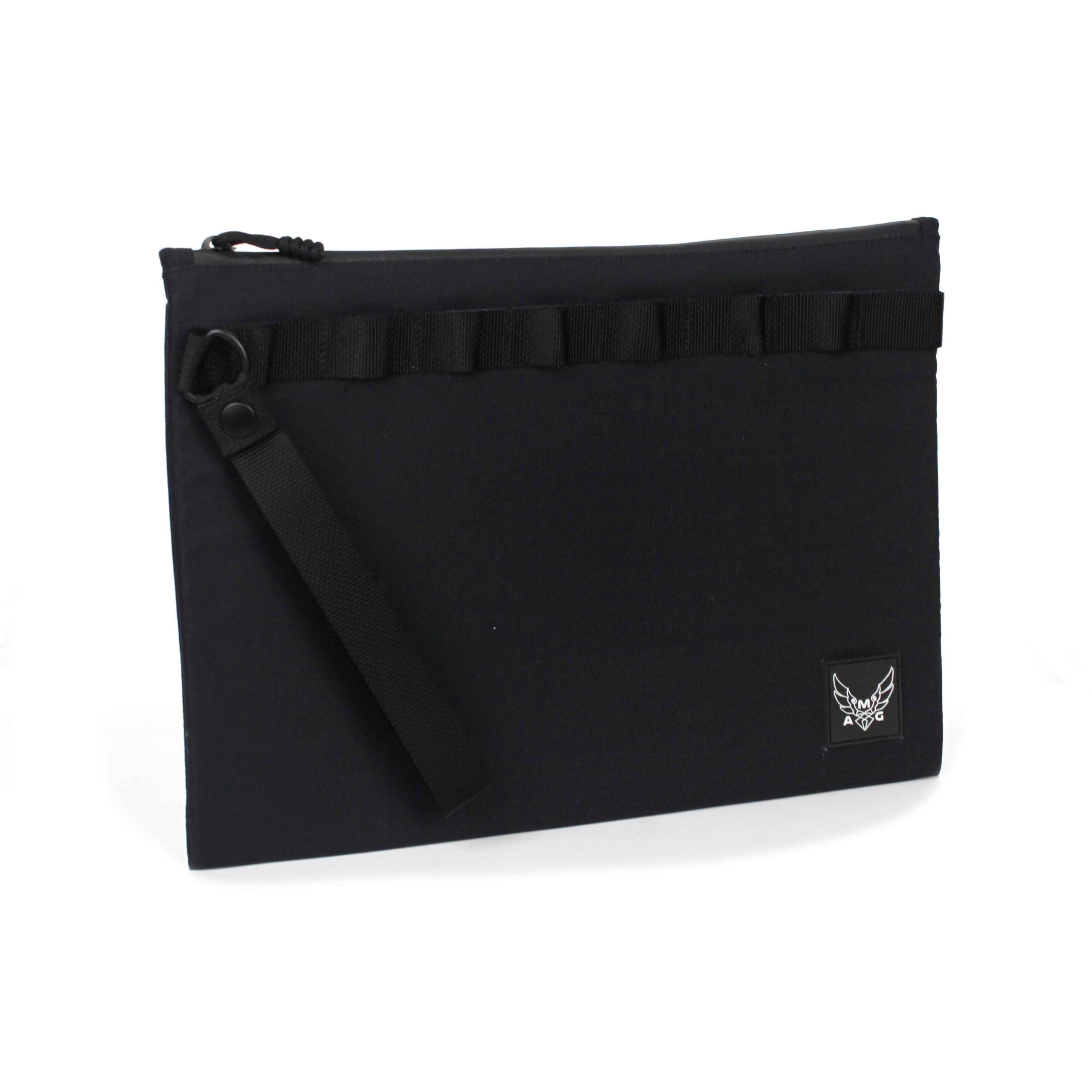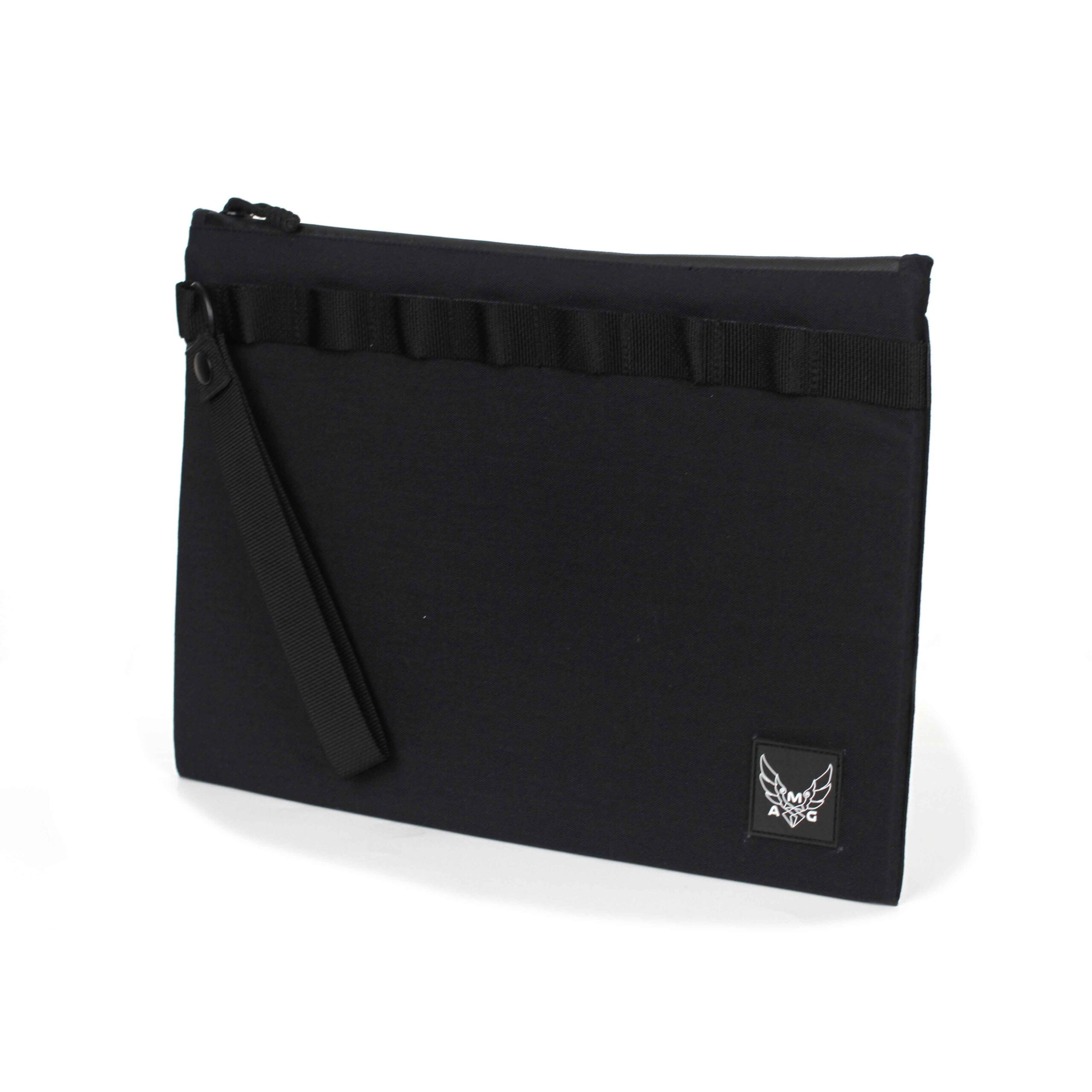 AMG’s Black Ragussa-L Computer/Pad Carry Cases are available in three different sizes to accommodate your everyday carry. Made of 1050D, the clutch is tough and durable. It has a main compartment and an internal pocket. Single sided, thick padding ensures your EDC is protected. The Water Repellent zipper is secured by HK clip. Multiple loops on the exterior allows for additional accessories. Removable handle. Unisex.