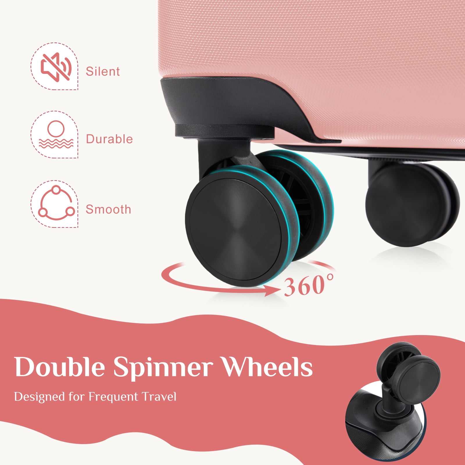 • SUPER SMOOTH 360° SWIVEL CASTERS – The luggage set features 360° swivel casters for effortless mobility. These smooth, low-noise wheels make it easy to roll each suitcase in any direction, reducing wrist strain and ensuring an excellent travel luggage set experience.
