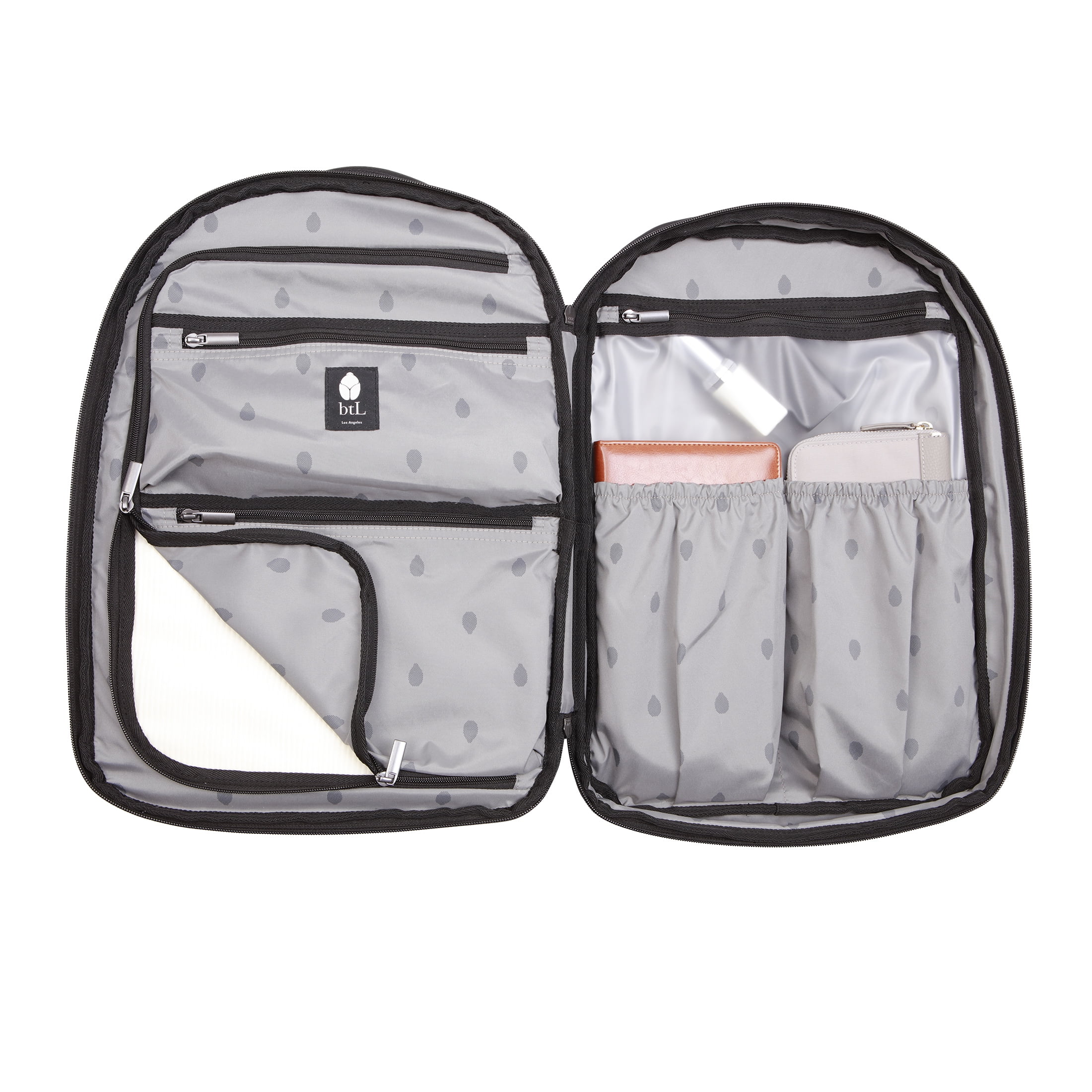 btL embraces the profound impact of travel—venturing out beyond the familiar with accessories that inspire confidence and ease through quality and reliability. Travel boldly with our convertible zippered backpack tote, where durability is first and foremost, featuring nylon construction. This collection comes in four colors: Black, Rose Smoke, Blue Shadow, and Taupe. Each tote features a soft-lined pocket to protect lenses and phones during your adventures. A padded sleeve ensures your laptop stays safe, accommodating up to 15-inch laptops. The tote is compliant with most airline regulations. Now is the time to seize the moment—pack your bag and explore on your own terms. Sold exclusively at Walmart and Walmart.com.