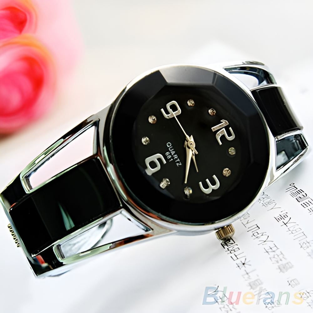 Features: Round Case, Rhinestone Decor, Bangle Watch
