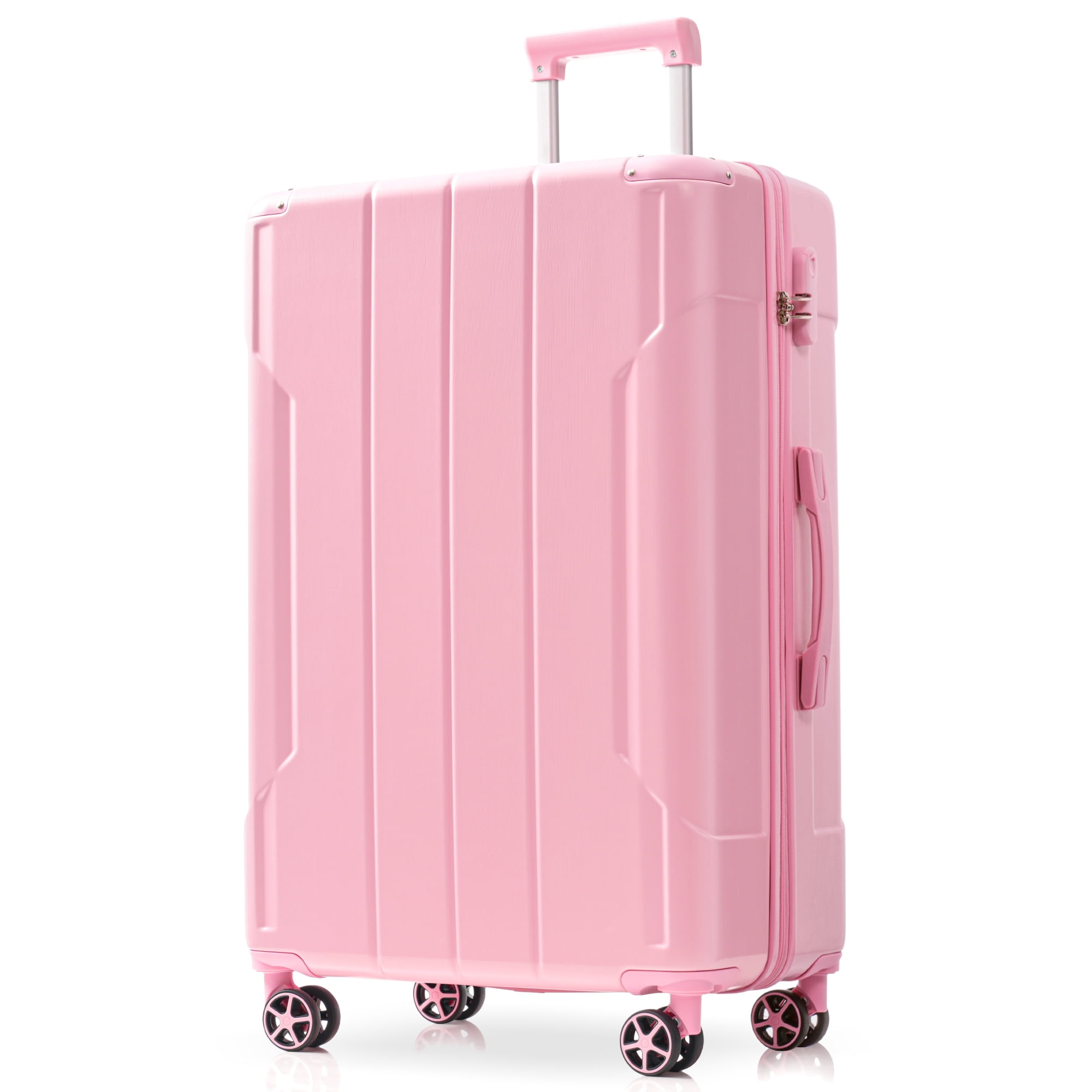 EUROCO 3 Piece Luggage Set, ABS Hardshell Lightweight Durable Suitcase with Double Spinner Wheels for Travel(20″/24″/28″),Pink