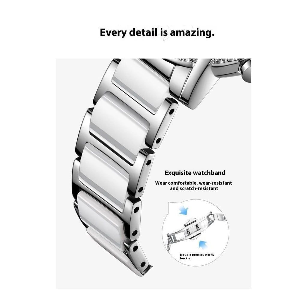 - Designed with a high-quality ceramic strap that offers a smooth texture and refined appearance.