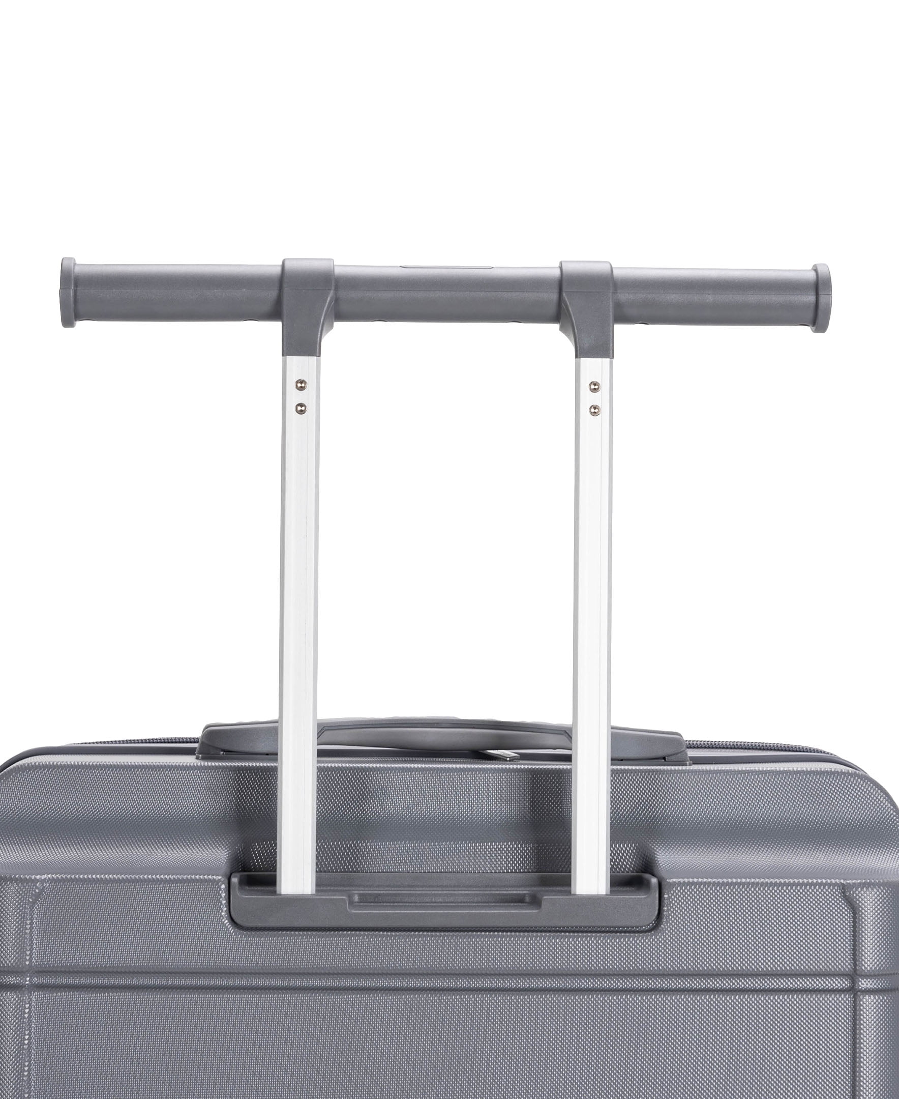 - Wing-on push-button recessed locking trolley handle system for securely hanging additional bags onto your luggage.