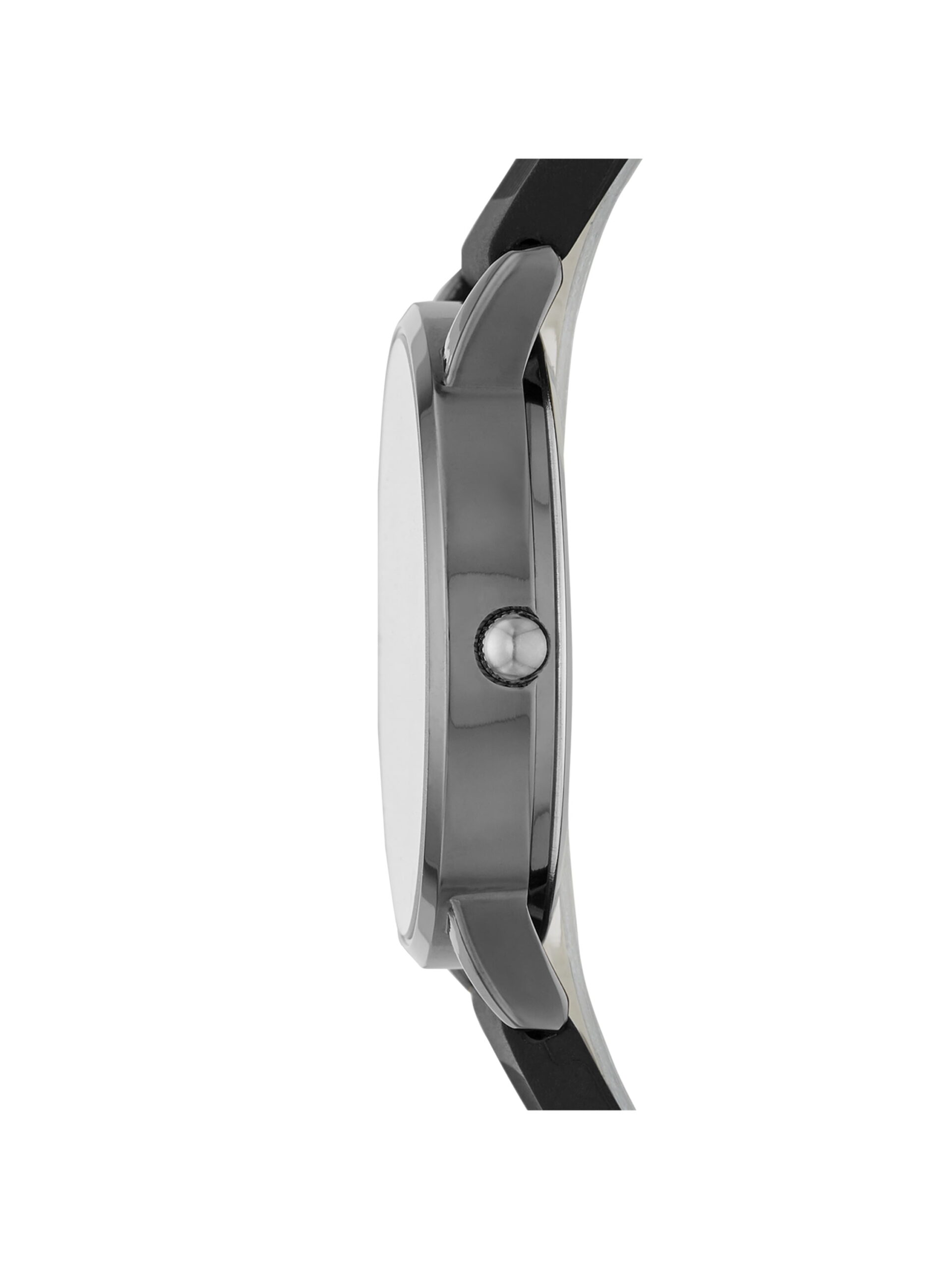 Presenting the George Men’s analog watch, adorned with a black dial featuring crisp markers and paired with a sleek, silky black textured silicone strap. This timepiece epitomizes the pinnacle of minimalist casual detailing. Its refined design emphasizes simplicity and elegance, making it an ideal accessory for those who appreciate understated style. The combination of the clean dial and the luxurious texture of the strap sets this watch apart, offering a perfect blend of sophistication and minimalism for the discerning individual.