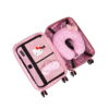 Keep your belongings conveniently and efficiently stored in one place while breezing through the airport or hotel lobby with this adorable Hello Kitty pink rolling luggage on wheels. Designed with a stylish, eye-catching Hello Kitty embossed aesthetic, this hard shell carry on luggage features eight 360 degree multi-directional spinner wheels with to allow for smooth travel over all types of textured surfaces, and the lightweight hard sided luggage with spinner wheels features a retractable pull handle so you can reach your destination without hassle. The hard case luggage features a sizable polyester-lined main zip compartment for easy packing, a zip wet dry compartment for personal essentials, 2 mesh zip pockets for small accessories, clothing compression straps to keep clothing from wrinkling, and features expandable storage with 2-inch zipper gusset. The light weight carry on luggage roller features a hard shell ABS plastic case which protects your luggage and is easy to spot clean to keep the carry on luggage with wheels looking stylish during travel. The travelling bag with wheels measures 14 W x 8 D x 21 H in inches, and weighs 10 lbs.