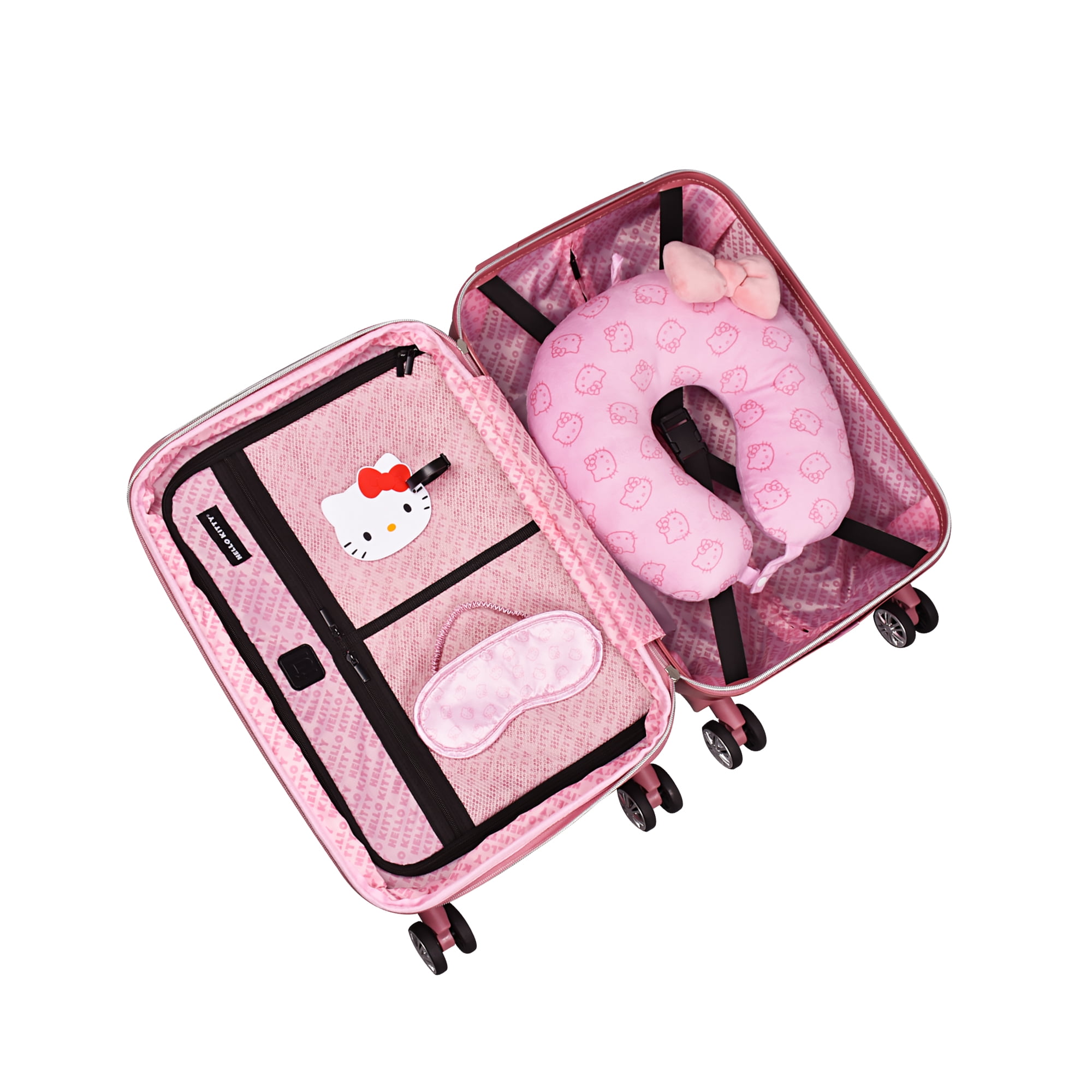 • Pink hardshell luggage with a cute Hello Kitty design; Hardshell luggage carrier meets most airline requirements for carry-on luggage and fits into most overhead bins