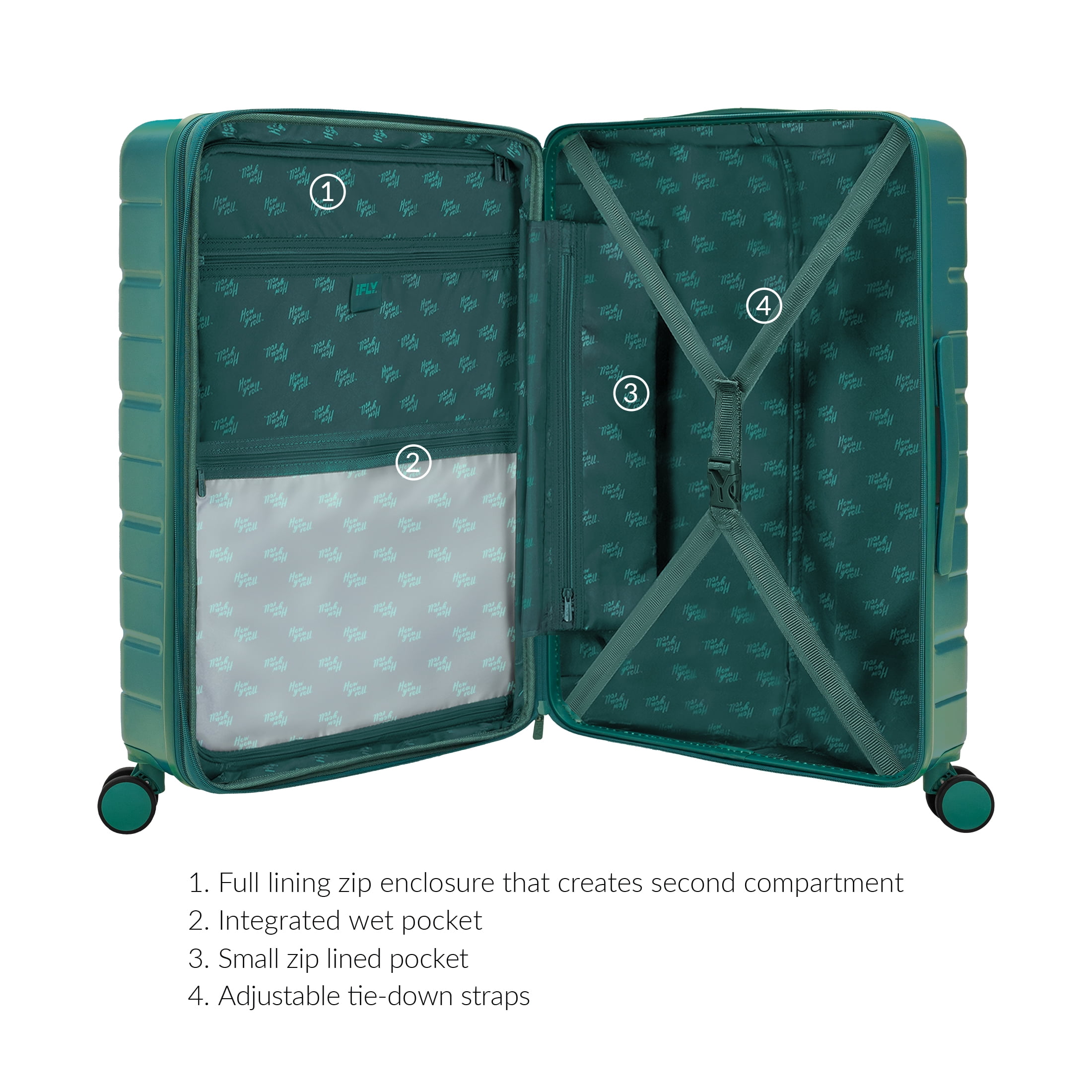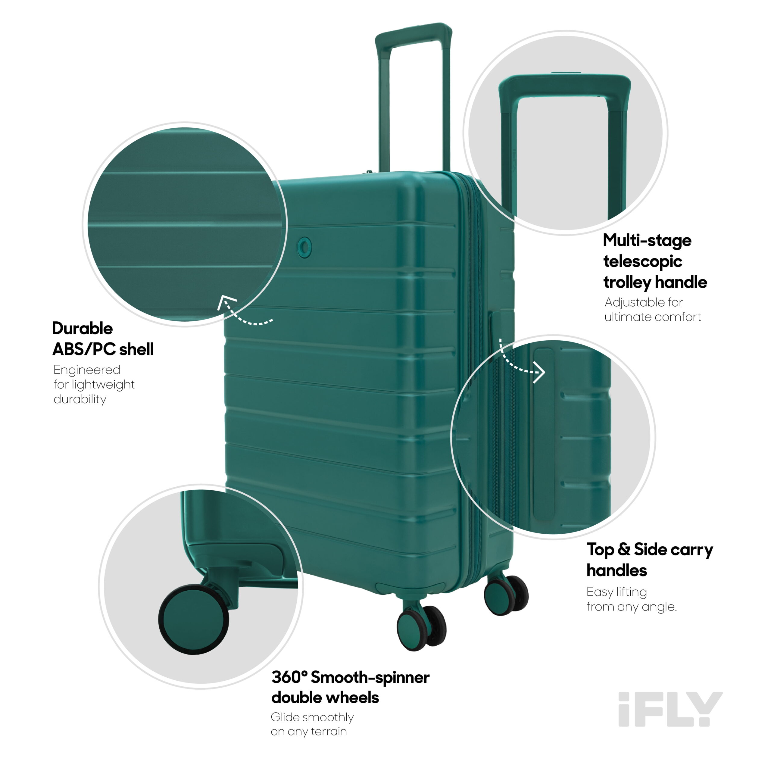 Travel smarter with the iFLY Evolve Collection, available in Teal and Navy. This hard-side luggage combines modern style with dependable durability, featuring smooth double spinner wheels, a multi-stage telescopic handle, and a thoughtfully organized interior with tie-down straps and a wet pocket. Lightweight yet impact-resistant, the Evolve Collection makes every journey easier and more stylish — and it’s backed by iFLY’s industry-leading 20-year warranty for total peace of mind. Available in carry-on, medium checked and large checked sizes.