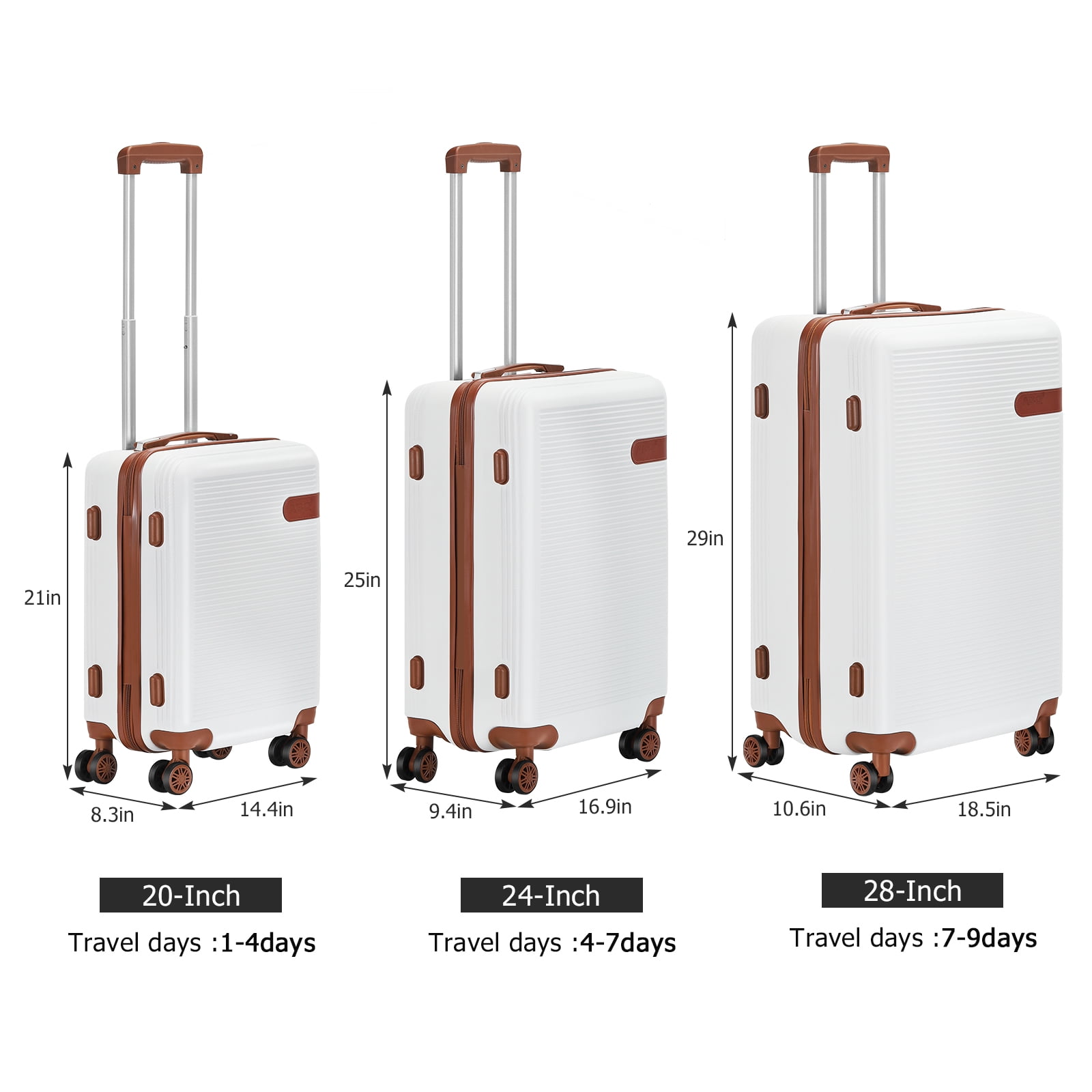 - Versatile Set of 3 Luggage Sizes- This comprehensive travel set includes three different-sized suitcases to cater to all your travel needs, whether for a weekend getaway or an extended vacation.