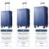 Telescopic Handle: 3-level adjustable handle to meet the needs of users of different heights. 3 size, 20-inch 13.8*8.3*21.5″, 24-inch 16.2*10.2*25.1″, 28-inch 18.5*11.6*29.5″. One set to meet all needs. This travel luggage set is the best choice for family travel.