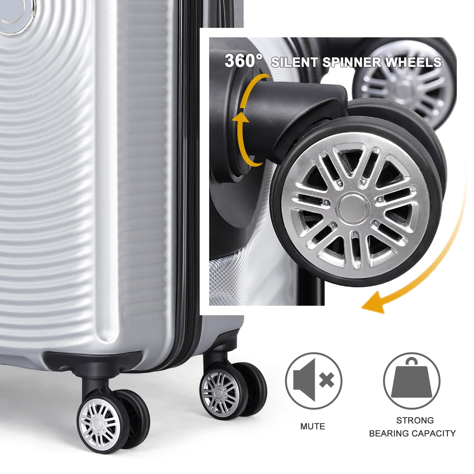 - Smooth and Silent 360-° Spinner Wheels: Navigate through airports, train stations, and hotels with ease thanks to the silent 361-° spinner wheels of our luggage set. Expe rience effortless movement without the noise, even in busy environments. These wheels guarantee a smooth glide, making your travel experience comfortable and enjoyable.