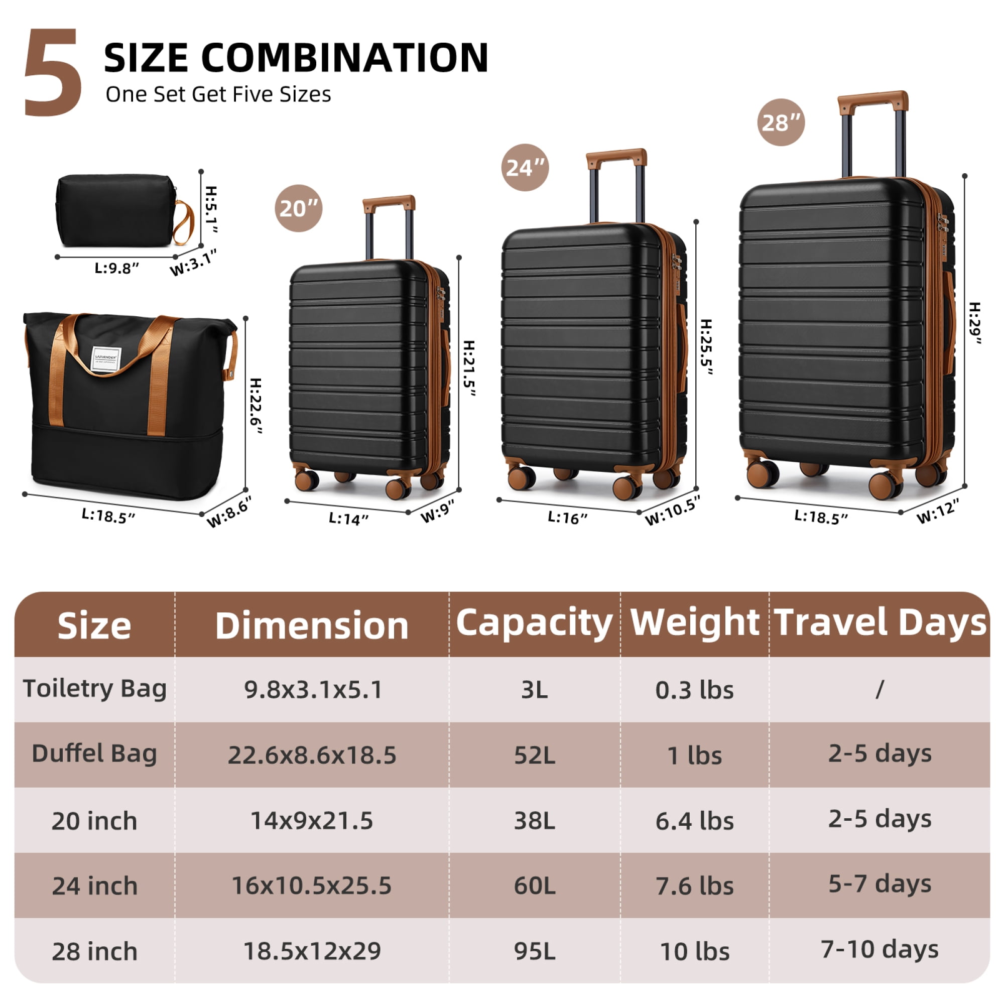 Luggage Sets 5 Piece with Duffel Bags, Hardside Expandable Suitcases with Spinner Wheels