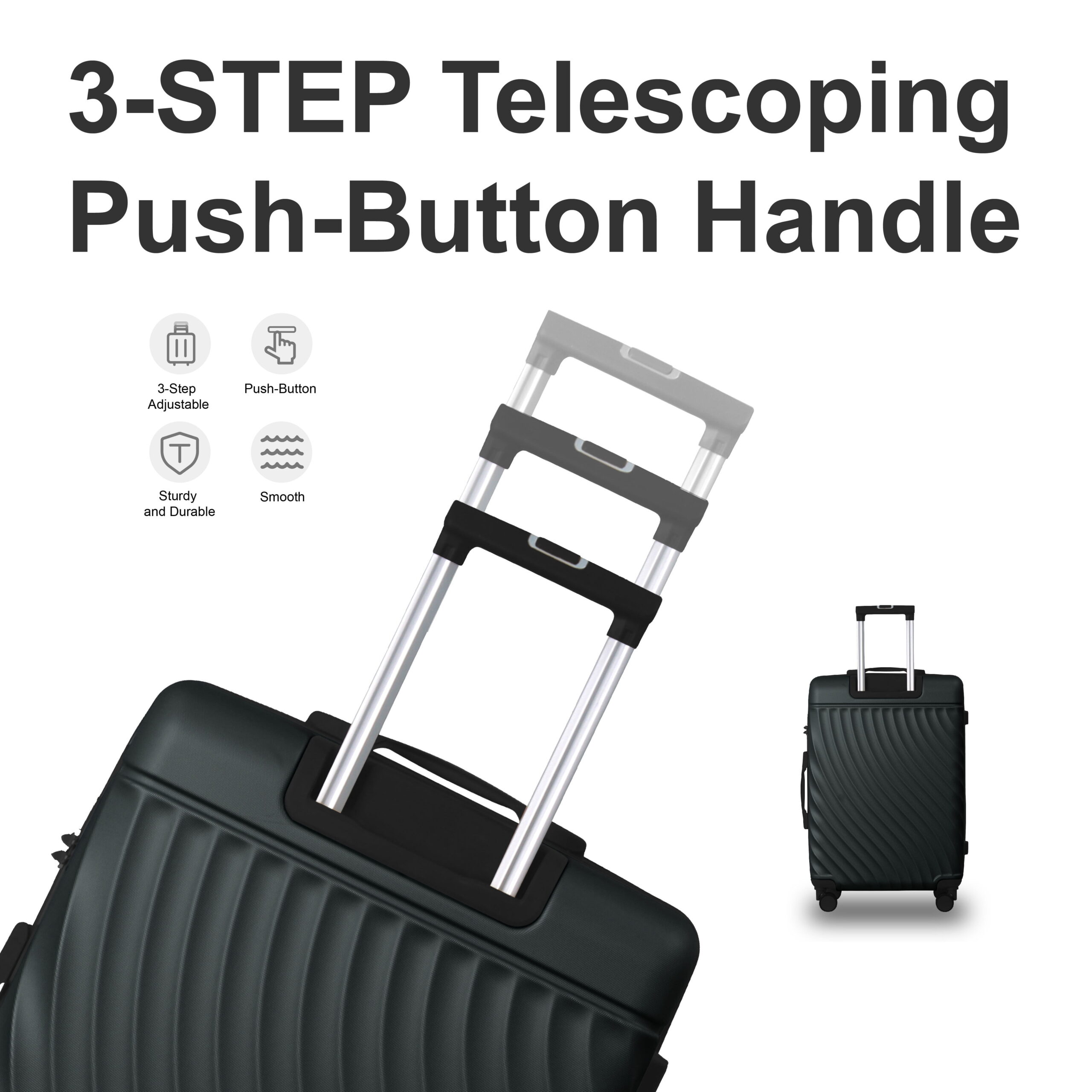 The MAYEERTY 3-Piece ABS Hardshell Luggage Set offers durability, security, and smooth mobility. Made from lightweight, scratch-resistant ABS, it features 360° silent spinner wheels and an adjustable telescopic handle for effortless travel. The TSA-approved lock keeps belongings secure, while the spacious interior with dividers and cross straps ensures organized packing. Nested design allows for compact storage when not in use. Perfect for business and leisure travel.