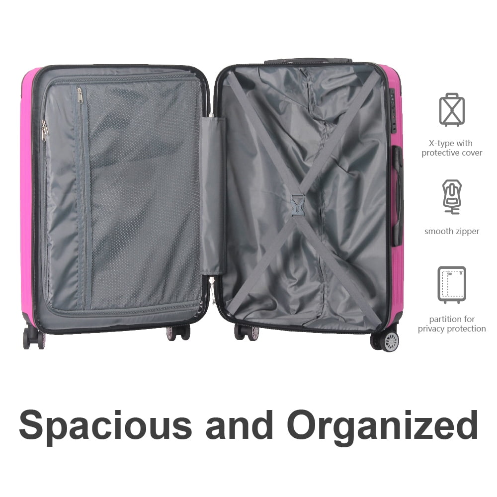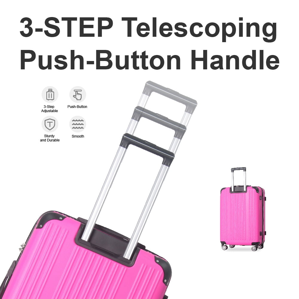 Upgrade your travel experience with the MAYEERTY 3-Piece ABS Hardshell Luggage Set, crafted from durable, lightweight ABS material for long-lasting performance. The stylish three-dimensional stripe pattern with reinforced corners enhances durability while resisting dents and scratches, ensuring your luggage remains sleek trip after trip. Designed for effortless maneuverability, this set features 360° silent spinner wheels, allowing for smooth rolling in any direction. The adjustable telescopic handle with three height settings ensures a comfortable grip for travelers of all heights. For security, the TSA-approved combination lock protects your belongings while ensuring a seamless airport security check. Inside, enjoy a spacious, organized interior with multiple compartments, mesh pockets, and a 212D waterproof lining to keep your essentials neatly stored and protected from moisture. The nested design allows for compact storage when not in use, making it perfect for both frequent and occasional travelers. Whether you’re embarking on a business trip, family vacation, or weekend getaway, this stylish and functional luggage set is built to meet all your travel needs.