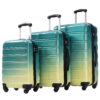 The MAYEERTY 3-Piece Gradient Color PC Luggage Set is perfect for travelers who appreciate style and security. Constructed from high tenacity PC material, these hardshell suitcases are designed to resist impact and pressure, minimizing damage from travel mishaps. Each suitcase is protected by a film to prevent scratches and bumps until your first use. The set includes a TSA-approved lock for secure travel and strong, pierce-resistant zippers to keep your belongings safe. Equipped with silicone handles and a 3-step telescoping handle, these suitcases are easy to maneuver and lift. The 24-inch and 28-inch suitcases offer an expandable feature, adding 25% more space, and both have fully lined interiors with mesh pockets and elastic straps for organized packing. This gradient-colored, printed set is a stylish and practical choice for your travels.
