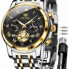 ⌚Multifunctional Men Watch:Male watch a chronograph with three sub-dials, showing 60 seconds, 60 minutes, moon phase, and a calendar window display on the right. The design style is simple, business, classic and generous.