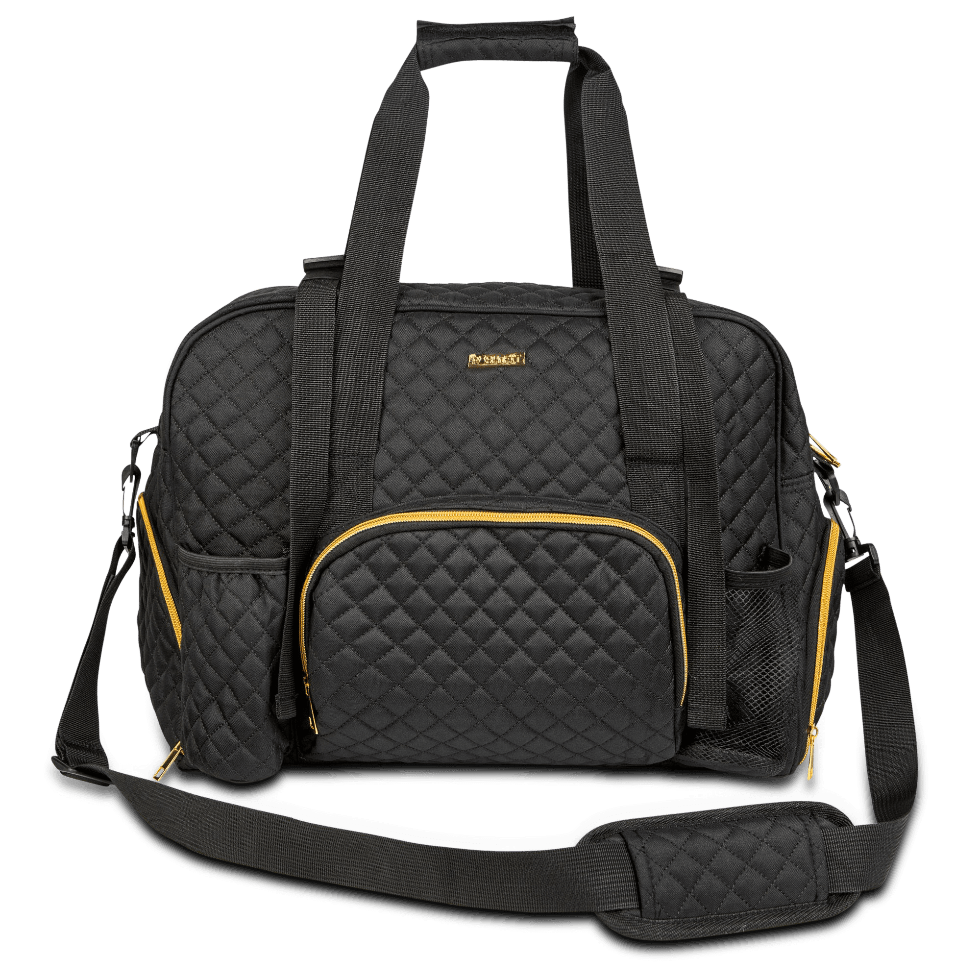 - stylish gold zippered pockets