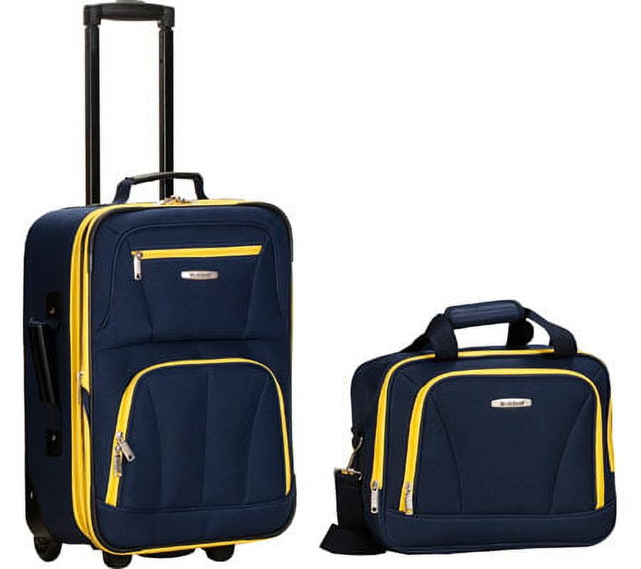 This beautiful deluxe 2-Piece expandable Luggage Set is manufactured with a patented heavy duty EVA-molded hi-count fabric. This set is perfect for the serious & experienced traveler!! Manufactured with the very best heavy duty polyester and PVC backing, this luggage set is designed for the traveler on the go and comes with a upright and a flight tote bag. It comes packed with features including: an inside retractable handle, EZ-Roll in-line skate wheels, back zippered secured pockets, top and side comfort grip handle, stability bars at the bottom to avoid tilting, and locks & keys. Upright features include: • Clear in-line skate wheel system for smooth ride • Push-button self-locking internally stored retractable handle system • Ergonomic and comfortable padded top and side grip handles • Two front full size zipper-secured pockets • Three internal organizational pockets for all your traveling needs • upright interior is fully lined with a durable and elegantly imprinted lining • Elegant silver pewter heavy duty industrial hardware Carry-On Flight Tote Bag features include: • Elegantly imprinted full interior lining • Detachable and adjustable non-slip shoulder strap • Spacious main compartment • Maximum strength industrial hardware • 19-inch Carry-on Upright: 19 inches high x 13 inches wide x 8 inches expandable to 10 inches deep. 6 lbs. • Carry-On Flight Tote Bag: 12 inches wide x 11 inches high x 5.5 inches deep – 1 lb.