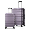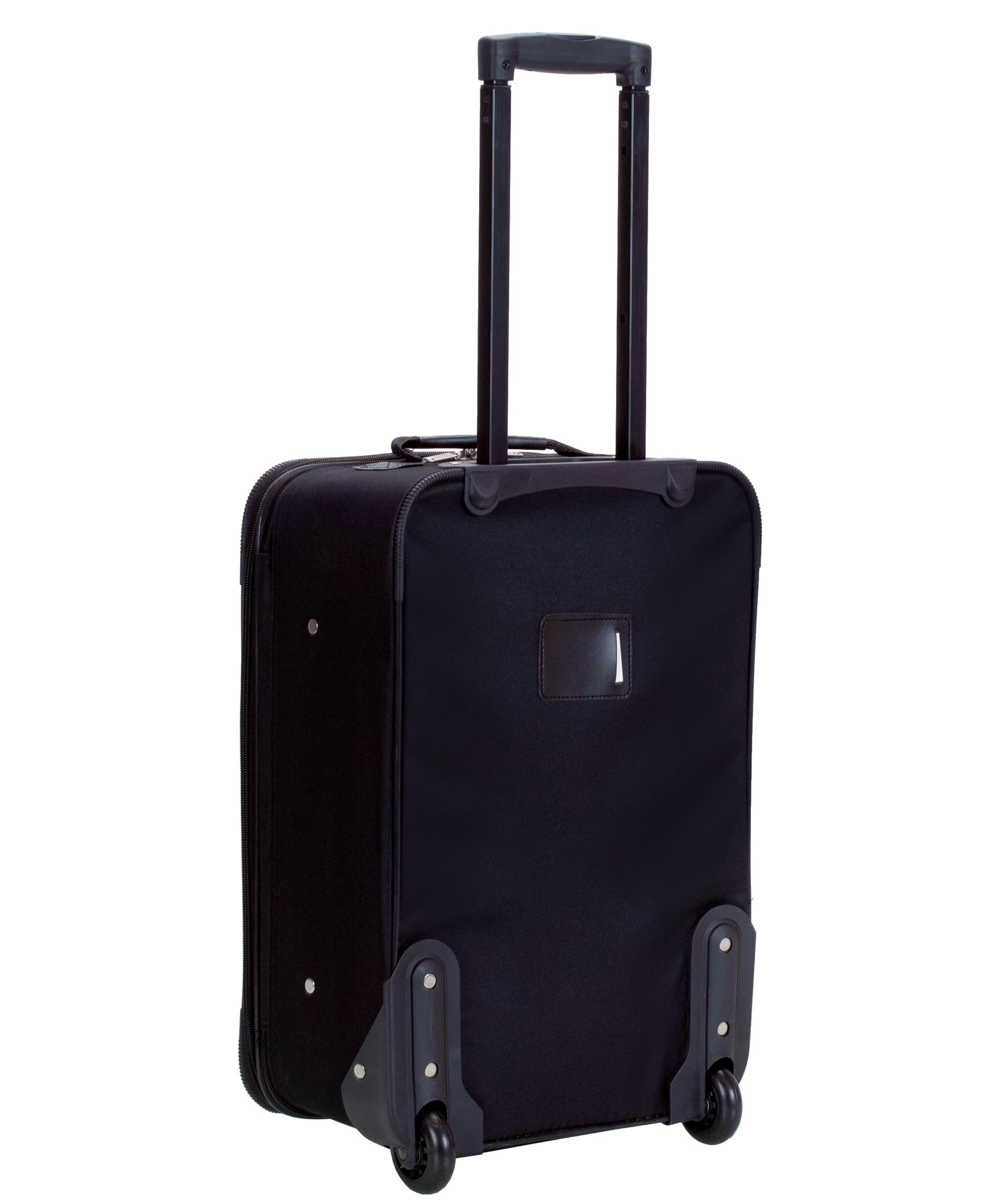 This beautiful deluxe 2-Piece expandable Luggage Set is manufactured with a patented heavy duty EVA-molded hi-count fabric. This set is perfect for the serious & experienced traveler!! Manufactured with the very best heavy duty polyester and PVC backing, this luggage set is designed for the traveler on the go and comes with a upright and a flight tote bag. It comes packed with features including: an inside retractable handle, EZ-Roll in-line skate wheels, back zippered secured pockets, top and side comfort grip handle, stability bars at the bottom to avoid tilting, and locks & keys. Upright features include: • Clear in-line skate wheel system for smooth ride • Push-button self-locking internally stored retractable handle system • Ergonomic and comfortable padded top and side grip handles • Two front full size zipper-secured pockets • Three internal organizational pockets for all your traveling needs • upright interior is fully lined with a durable and elegantly imprinted lining • Elegant silver pewter heavy duty industrial hardware Carry-On Flight Tote Bag features include: • Elegantly imprinted full interior lining • Detachable and adjustable non-slip shoulder strap • Spacious main compartment • Maximum strength industrial hardware • 19-inch Carry-on Upright: 19 inches high x 13 inches wide x 8 inches expandable to 10 inches deep. 6 lbs. • Carry-On Flight Tote Bag: 12 inches wide x 11 inches high x 5.5 inches deep – 1 lb.