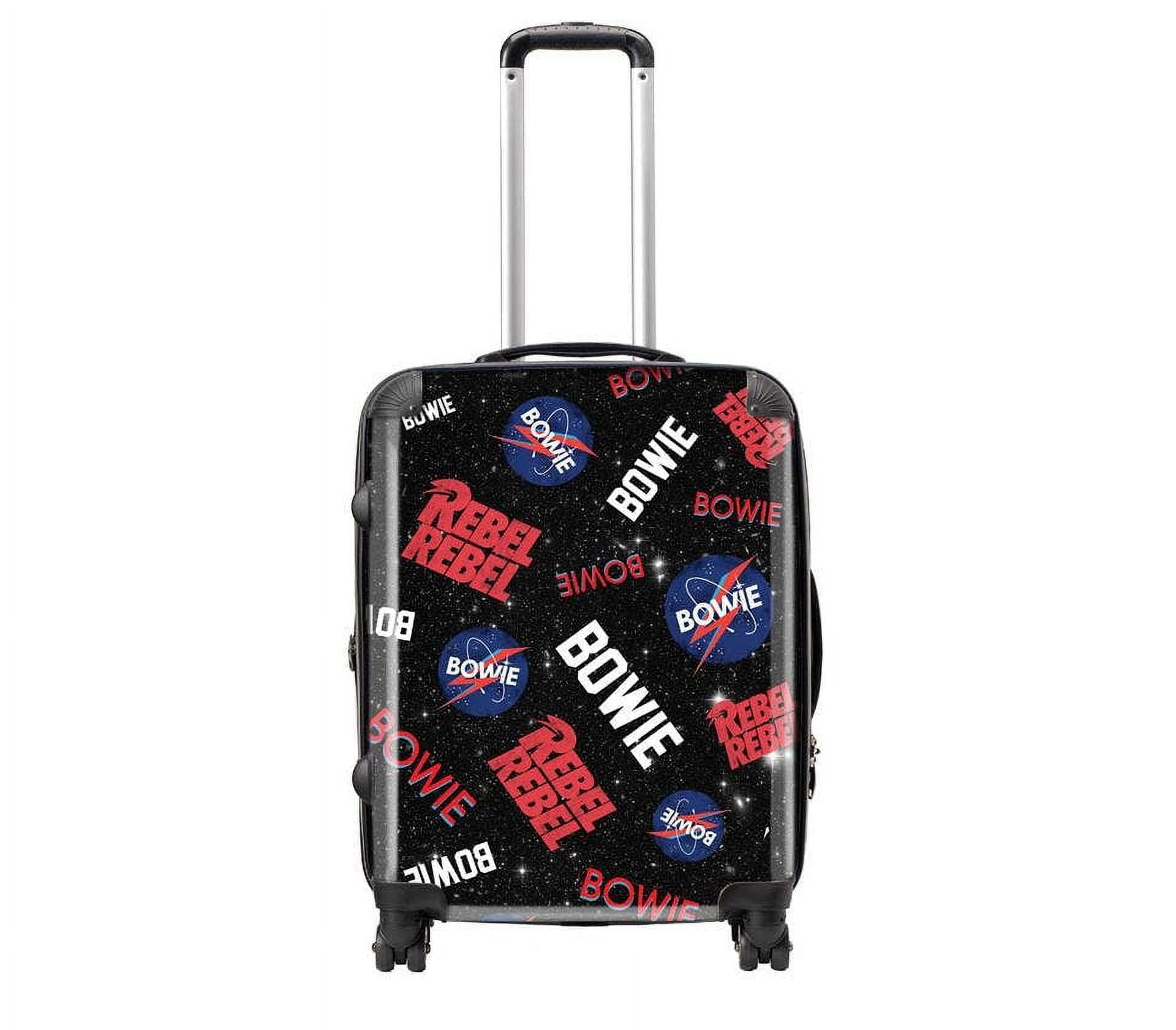 The Tour Series – Rocksax unique suitcases feature some of the most iconic artwork from the worlds greatest music acts. Printed with high definition graphics, protected by an polycarbonate shell, these hard case suitcases are perfect for short or long haul travel. Our suitcases are made from polycarbonate and diamond-debossed ABS hard-shell materials, with an internal alloy telescopic handle with push button system; adjustable to a variety of heights. Side-mounted TSA locks and top and side carry handles are included for easy lifting. Finished with a multi-pocket 210D lining with internal elastic straps help keep your items secured whilst being maneuvered on state-of-the-art 360 degree wheels. Our carry-on, medium and large suitcases are designed to fit inside each other for easy storage. Includes a non-woven polypropylene dust storage cover.