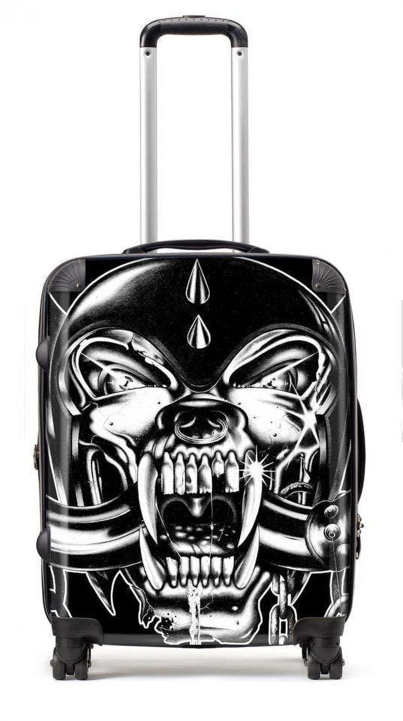 The Tour Series – Rocksax unique suitcases feature some of the most iconic artwork from the worlds greatest music acts. Printed with high definition graphics, protected by an polycarbonate shell, these hard case suitcases are perfect for short or long haul travel. Our suitcases are made from polycarbonate and diamond-debossed ABS hard-shell materials, with an internal alloy telescopic handle with push button system; adjustable to a variety of heights. Side-mounted TSA locks and top and side carry handles are included for easy lifting. Finished with a multi-pocket 210D lining with internal elastic straps help keep your items secured whilst being maneuvered on state-of-the-art 360 degree wheels. Our carry-on, medium and large suitcases are designed to fit inside each other for easy storage. Includes a non-woven polypropylene dust storage cover.