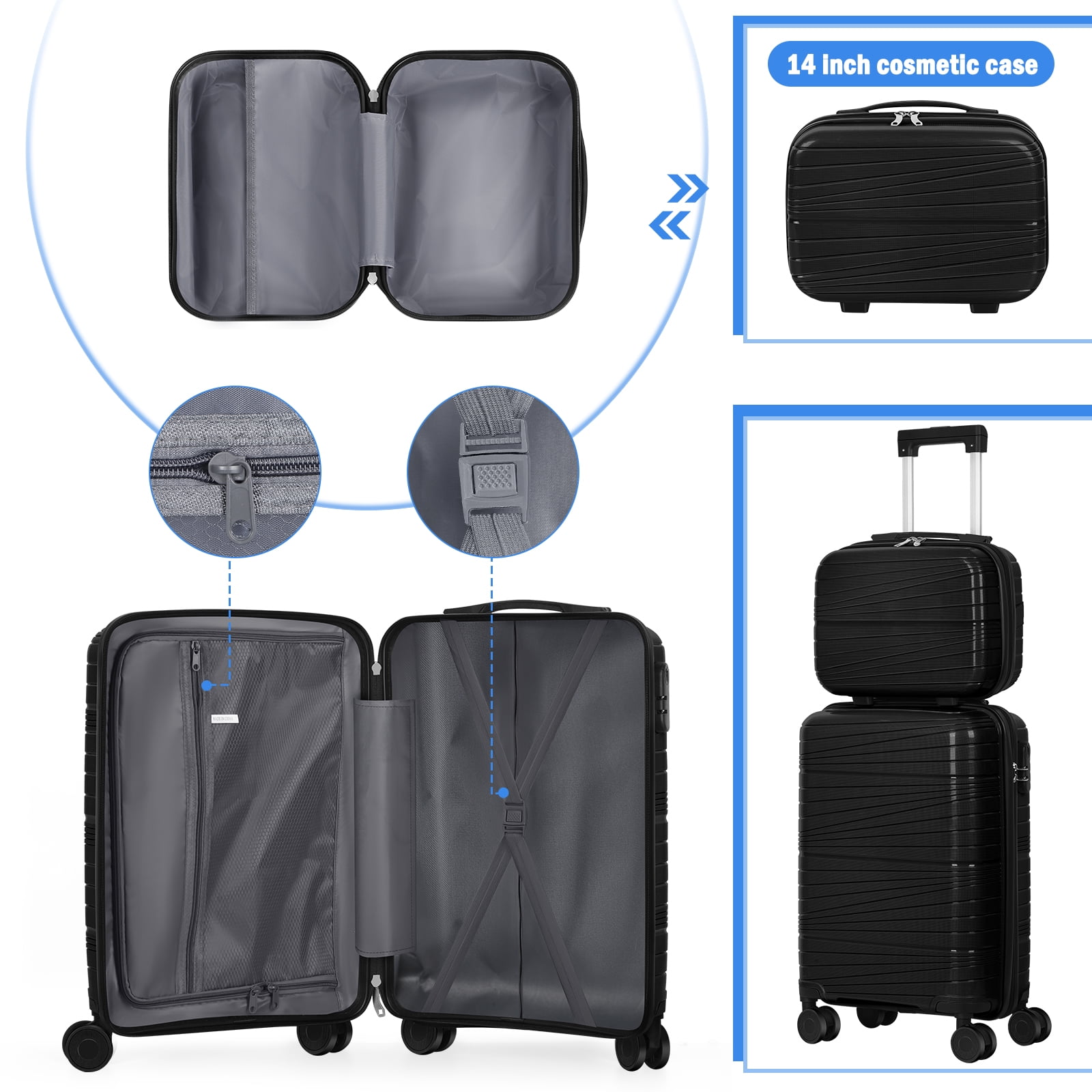 • EXTRA CARRYING CASE: This combo luggage we come with a 14″ carrying case, you can walk with it on the case or carry it in your hand to store some items you need to take out and use at any time.