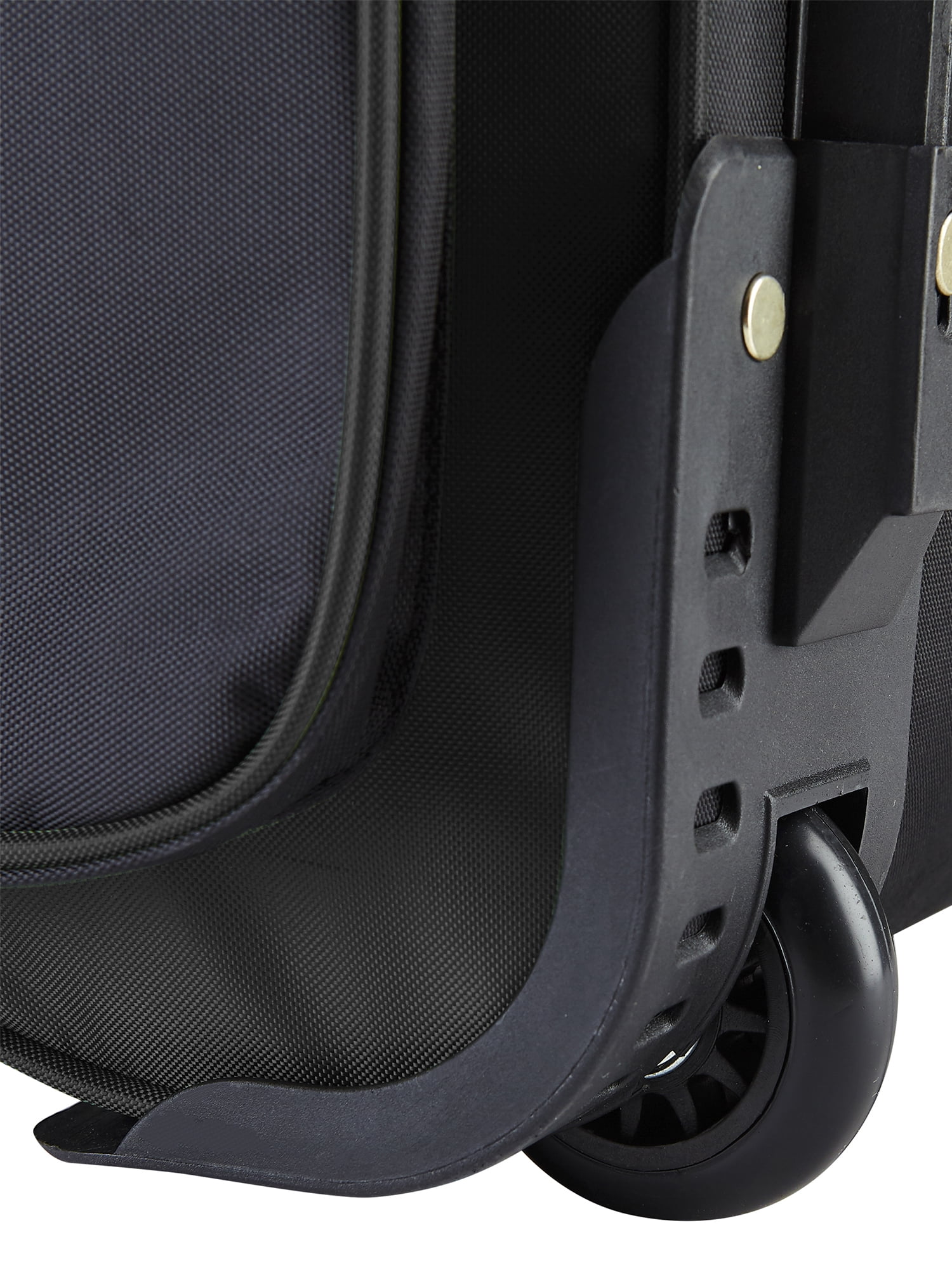 Keep all your travel necessities organized and stored away with this Travelers Club Adventure 30″ rolling upright duffel. This casual rolling duffel features seven packing pockets, a telescopic handle that secures its own pocket and two in-line skate wheels. This piece is made of rich polyester material. With bottom feet, this bag will stand straight in the upright position. Perfect when picking up at the airport with top webbing handles. Measures 30″ x 12″ x 13″ and will meet most airline check-in requirements. Additional colors available.