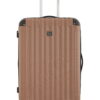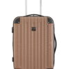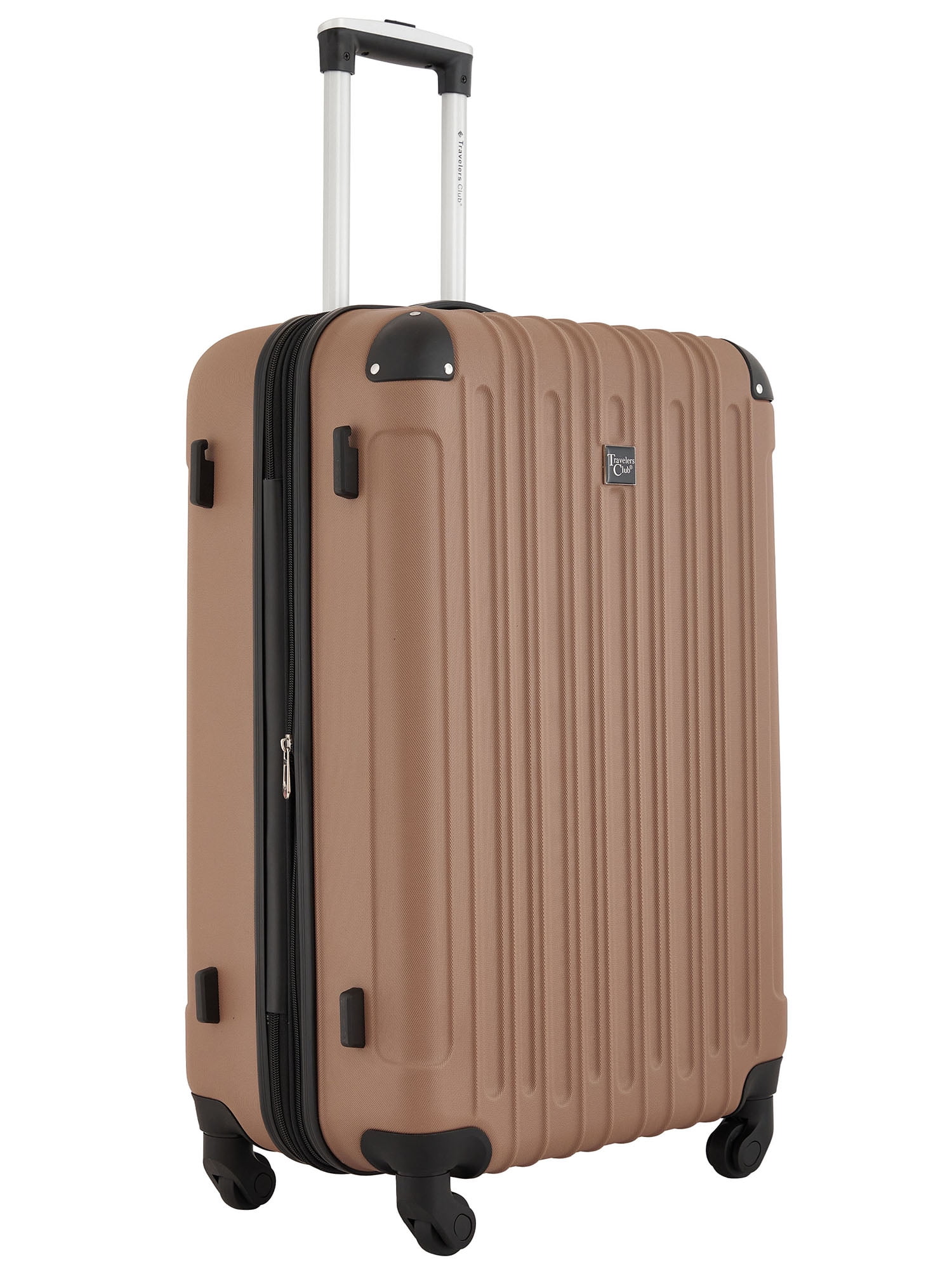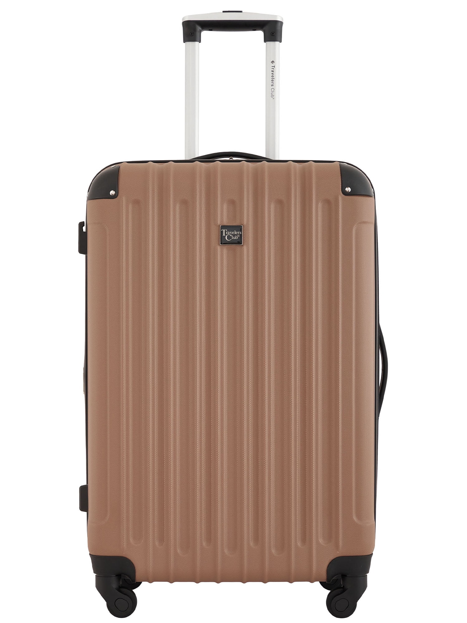 Travelers Club 4-piece luggage set includes a 24″ hard side spinner 4-wheel check-in upright, a 20″ hard side Spinner Carry On, a 15″ boarding tote bag with adjustable shoulder strap and an add-a-bag strap on the rear to attached to the handle of the upright and a 10″ Toiletry Kit. The 24″ and 20″ all are made of hard side material and are expandable for more packing room. Each has 4 easy-glide wheels with a telescopic handle along with a top and side carry handle for ease of handling. The interior is fully lined and has straps to keep your clothes in place. 20″ meets airline carry-on regulations. Packing room is 19.75″ and total height with the wheels is 22″. The tote and kit are made from polyester.