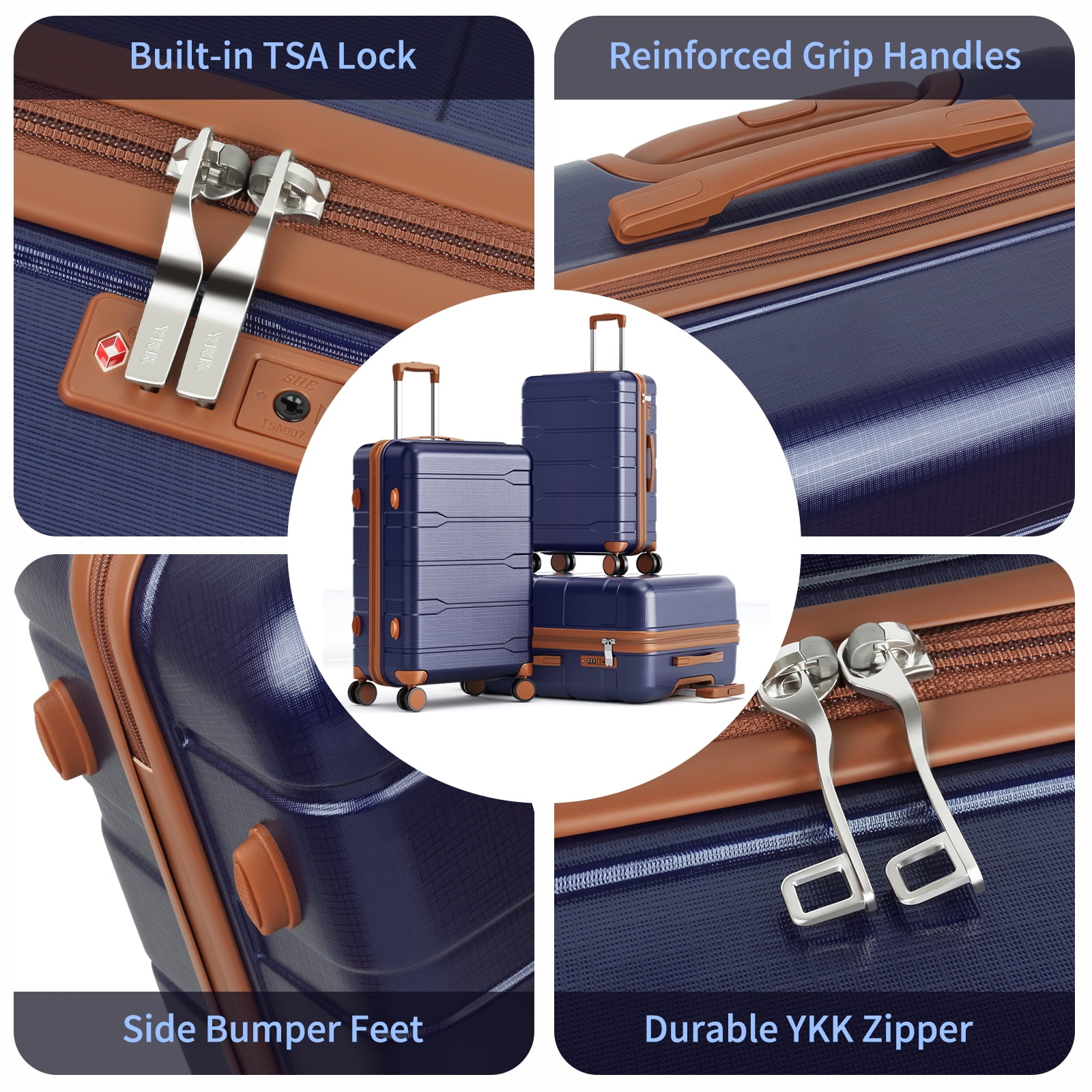- Durable PC+ABS Hardshell Construction: Crafted from a premium PC+ABS blend, these suitcases offer strong impact resistance while remaining lightweight. The hard shell helps protect clothing and valuables from pressure, drops, and rough handling, making this luggage set reliable for frequent travel by plane, train, or car.