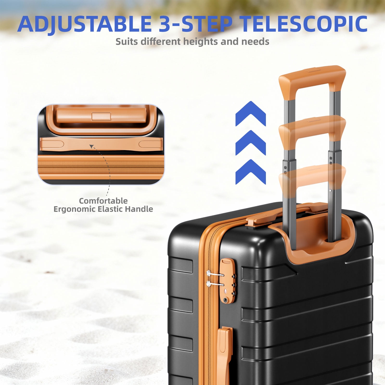 This set includes three practical sizes to meet different travel needs, from short getaways to extended vacations. The 360-degree spinner wheels glide effortlessly in all directions, allowing easy navigation through busy airports and hotel lobbies. An adjustable telescopic handle provides comfortable control for travelers of different heights.