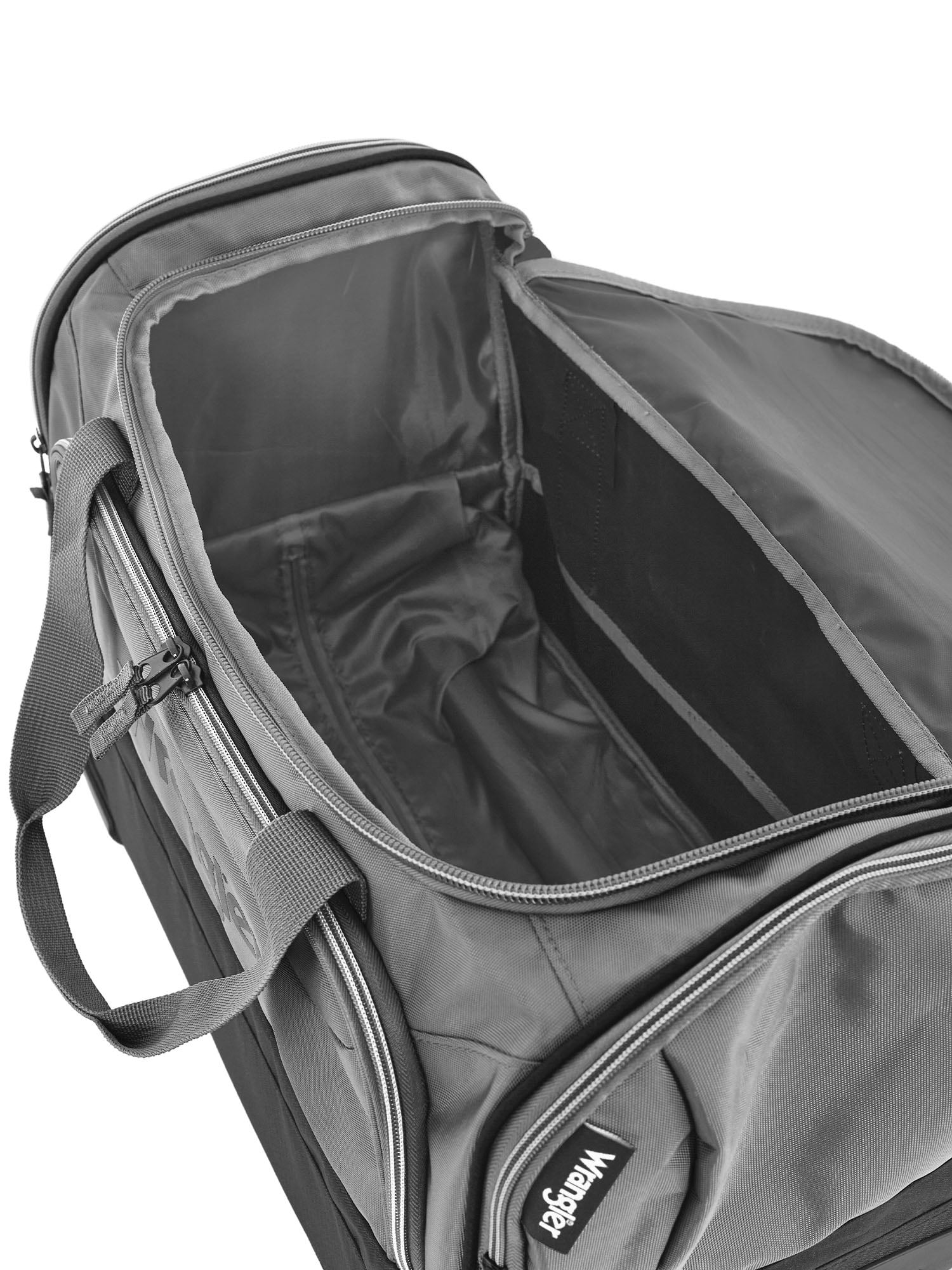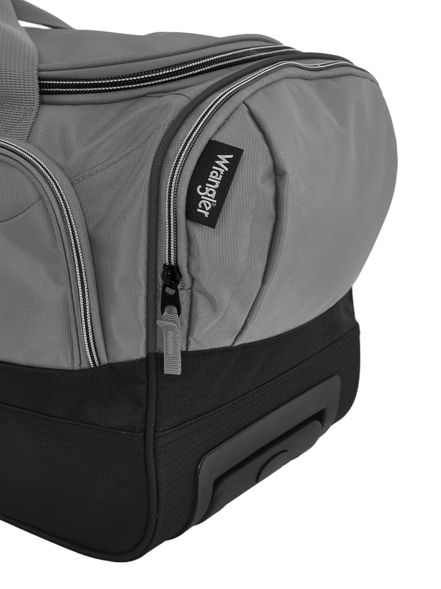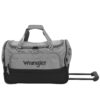 Wrangler deluxe 21″ rolling travel duffel bag with telescopic handle. Travel in style with this Wrangler 21″ rolling duffel. Made of deluxe 900 denier polyester and self-trim for extra support. Features easy glide in-line skate wheels, telescopic handle, generous pockets on each side, and a large front accessory pocket. Perfect for a 2 to 4-day trip. May meet airline carry-on requirements. Ideal for adult or children travel. Matching Wrangler duffels in additional styles are available on walmart.com.