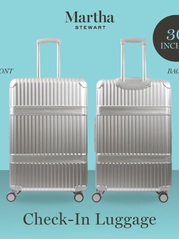 • Martha Stewart The Bedford 30 Inch Rolling Luggage, Hardshell Suitcase with Spinner Wheels, Silver