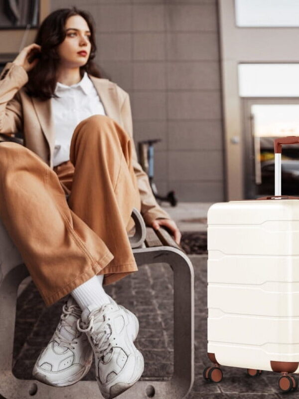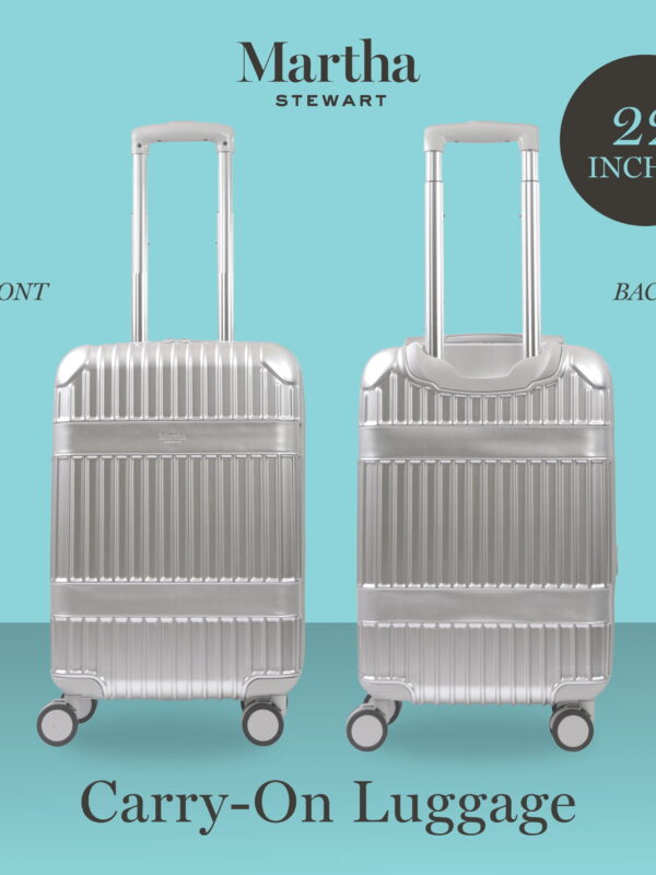 • Martha Stewart The Bedford 22 Inch Carry On Luggage, Hardshell Rolling Suitcase with Spinner Wheels, Silver