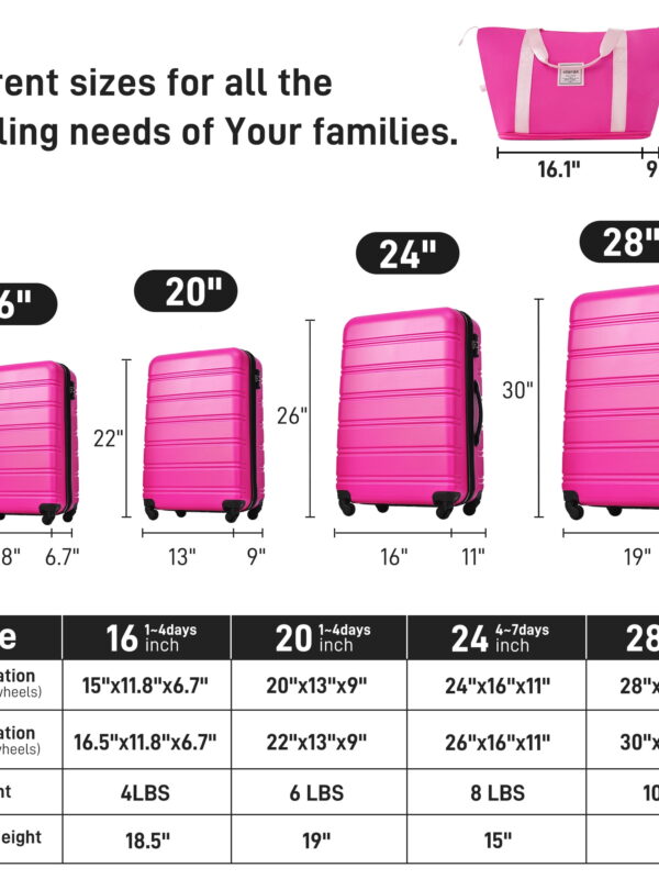 • Aukfa 13 Piece Luggage Set Expandable Hardside Carry on Suitcase Set with TSA Lock (16/20/24/28) - Pink