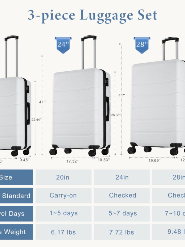 • Alvantor 3-in-1 Large Capacity Travel Suitcase Set, Durable ABS+PC Hardshell Luggage with Wheels, Purple (20"|24"|28")