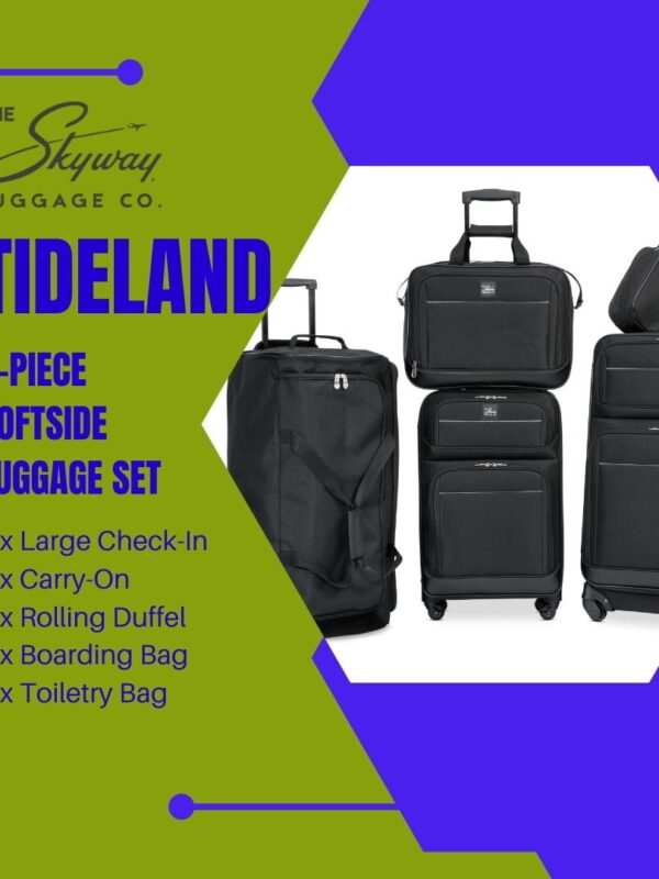 • Skyway Luggage Tideland Softside 5-Piece Travel Luggage Set with Spinner Wheels, Black