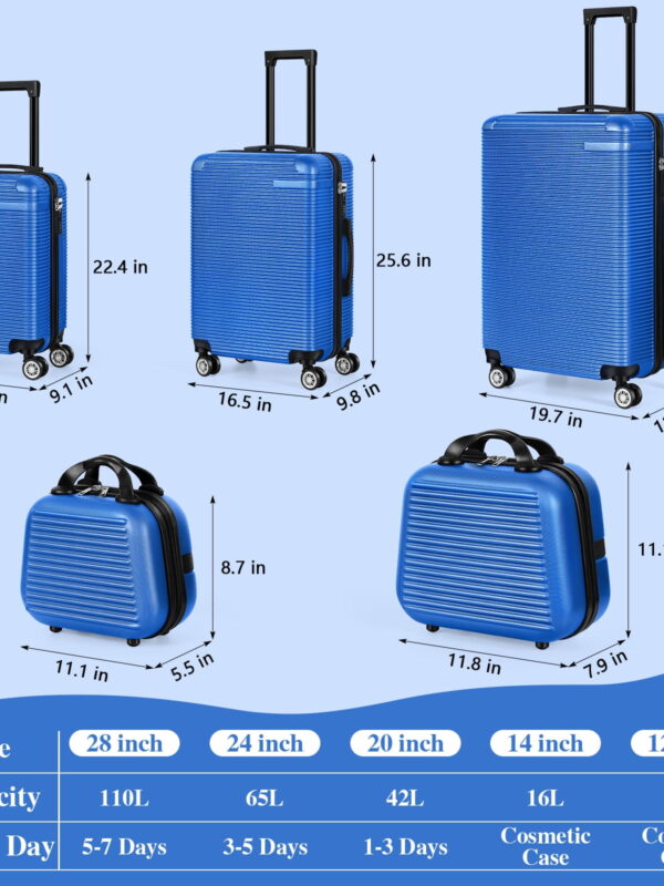 • Horizontal Stripe Luggage Travel 5-Piece Set Blue