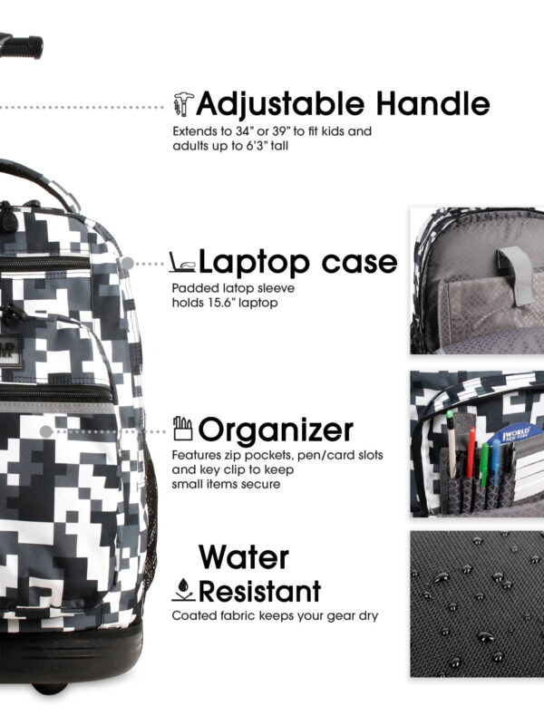 J World Unisex Sundance 20″ Rolling Backpack with Laptop Sleeve for School and Travel, Camo