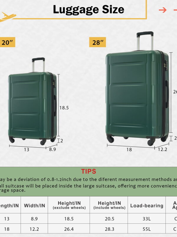 • MAYEERTY 4-Piece Hardside Luggage Travel Set with TSA Lock, 20"+28"Expanable Suitcase & Duffle Bag & Toiletry Bag