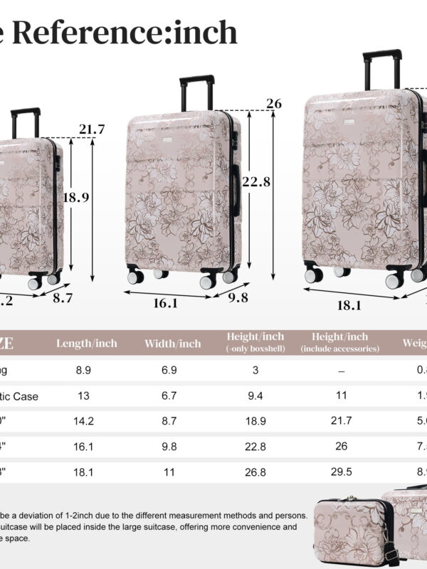 • MAYEERTY 5-Piece Floral PC Luggage Set (8"+14"+20"+24"+28") - Lightweight with Combination Lock & Spinner Wheels, Pink